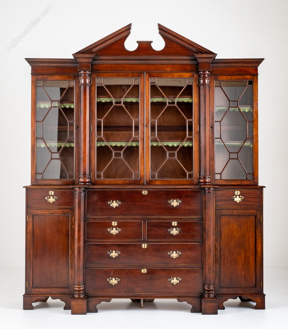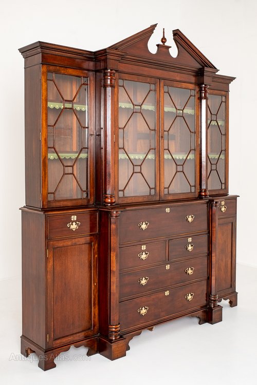 Georgian Revival Mahogany Breakfront Bookcase.
