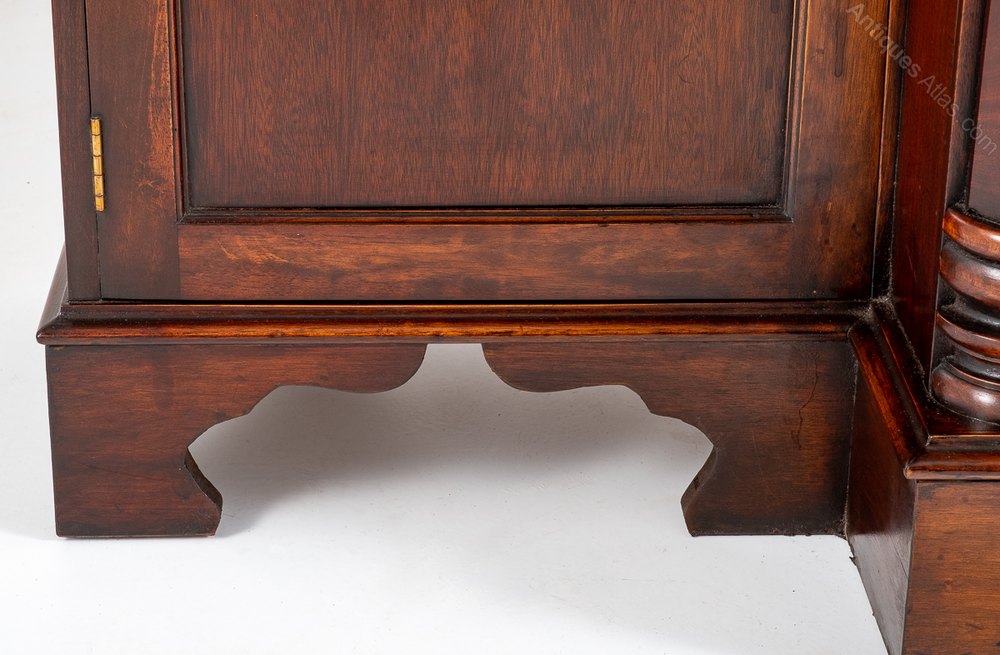 This Bookcase Stands Upon Bracket Feet, Having a Centre Section Featuring 2 Over 2 Mahogany Lined Drawers With a Secretaire to the Top Drawer.