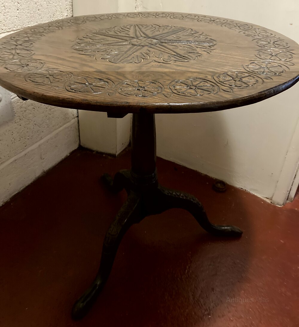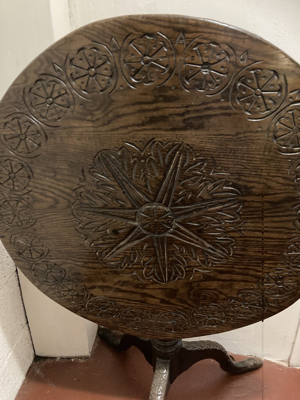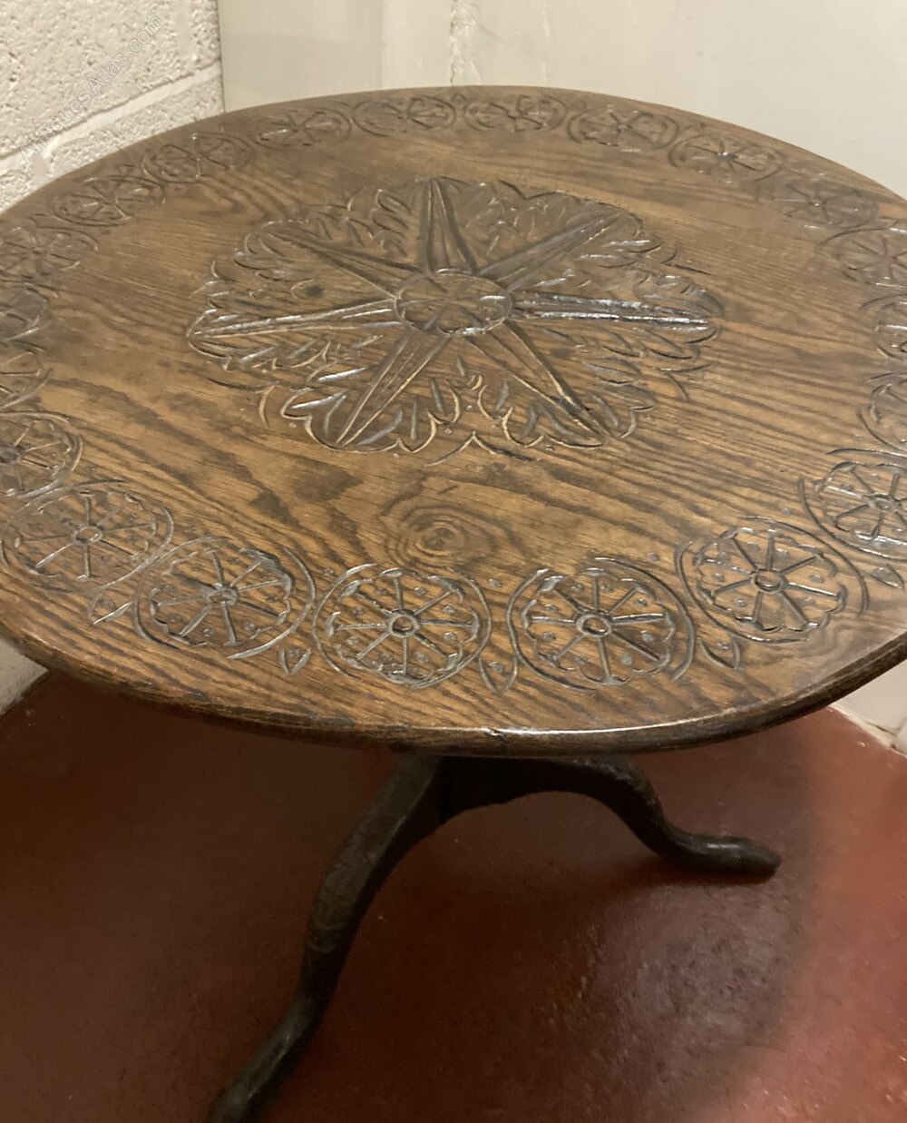 no-116-Georgian oak carved tiptop table with later Victorian carvings in very good condition