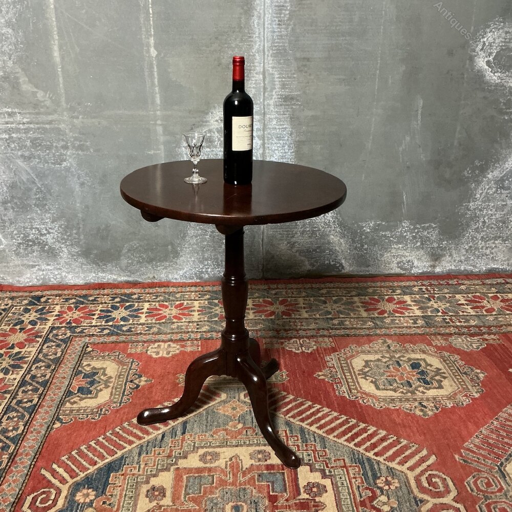 Circa 1780. A good antique Mahogany tripod/wine table with a fixed top. The round top is of a single piece of Mahogany and sits above a crisply turned centre pedestal, all sitting on 3 cabriole legs. All in very good condition with only a few marks under the polish. Nothing you wouldn’t expect at 240 years old. Will there ever be a better time to buy 18th century furniture. Britains hey day of design and cabinet making. SKU-G27