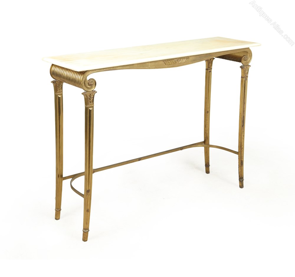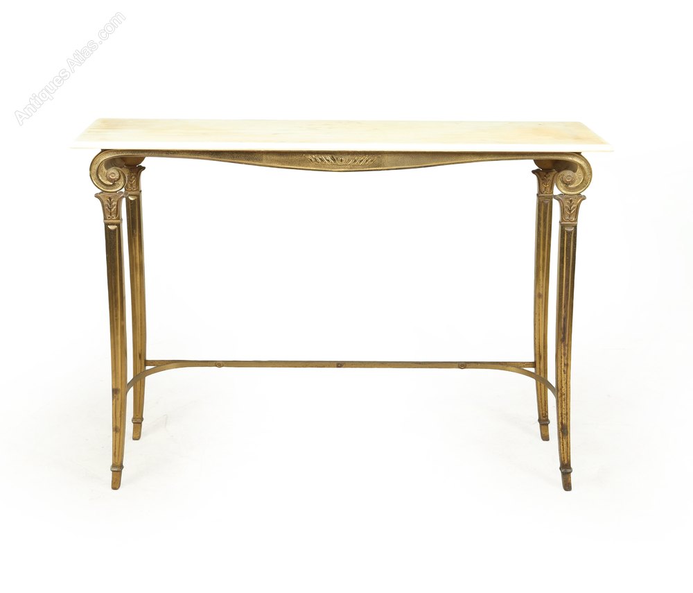 Gilt Metal and White Marble console Table