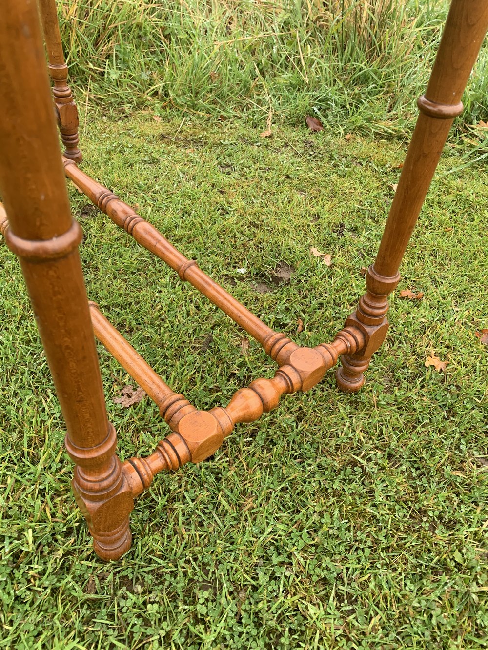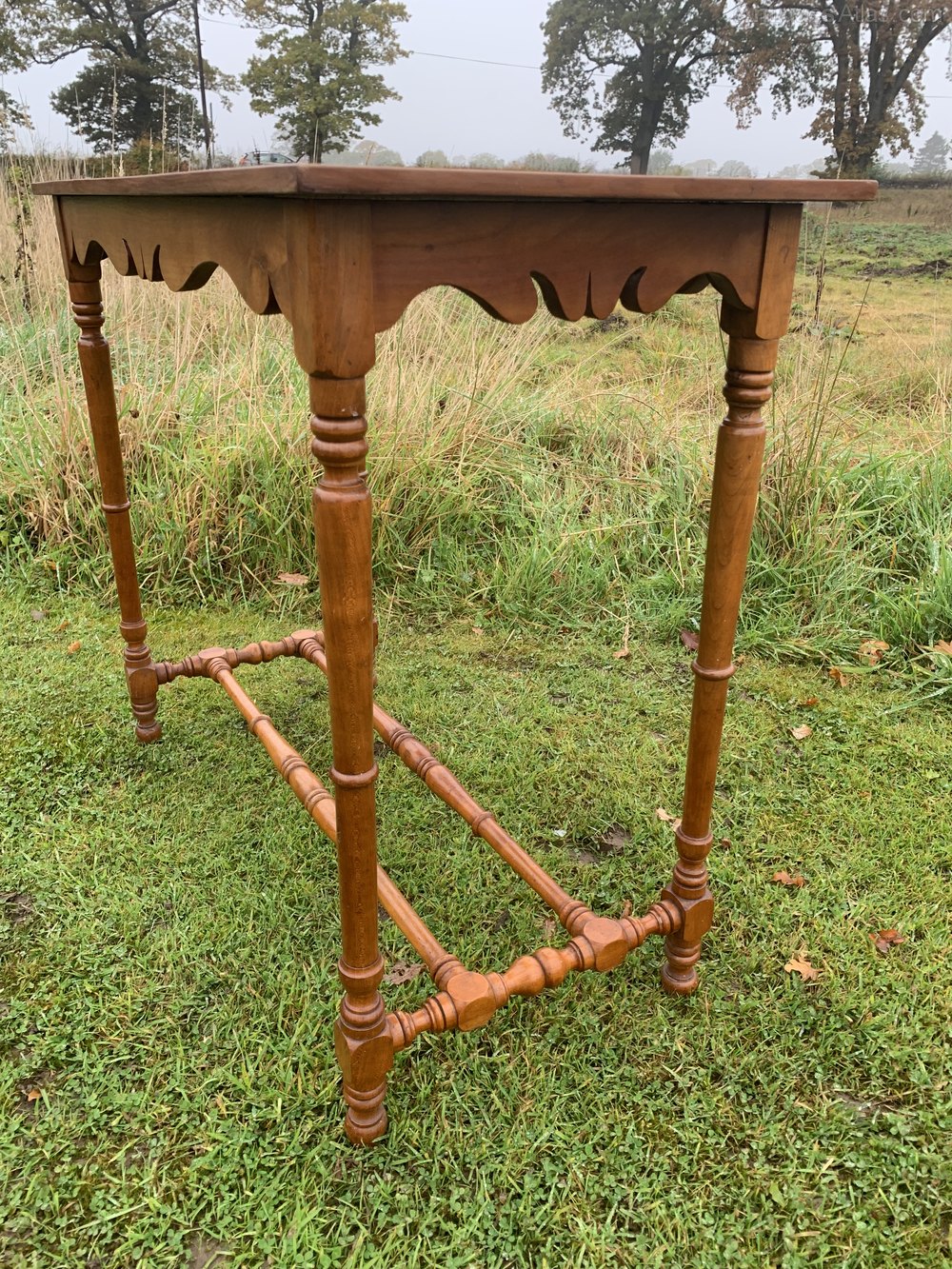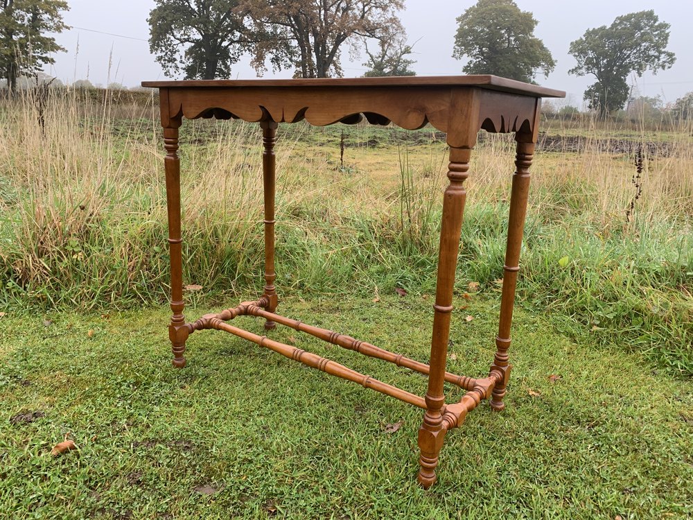 Elegant long narrow walnut side table with inset leather top lovely condition and colour. Please call if you require any further details.