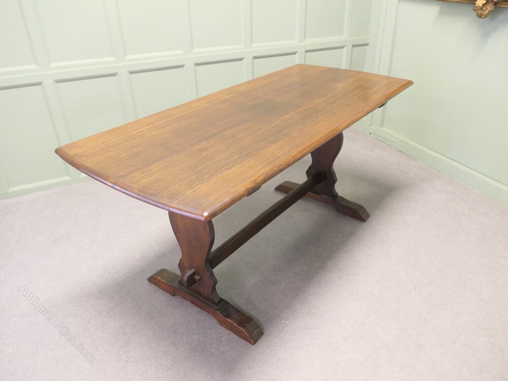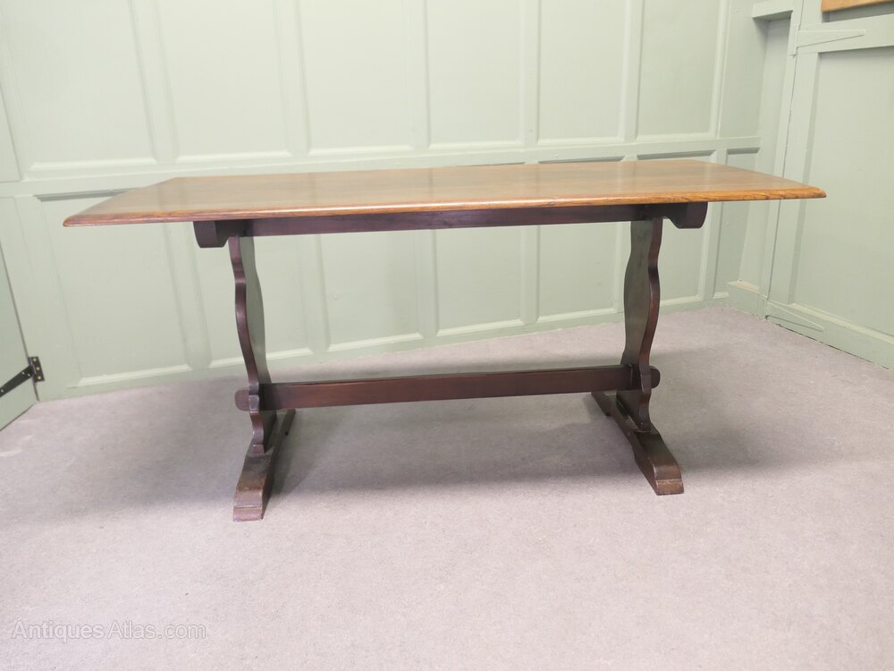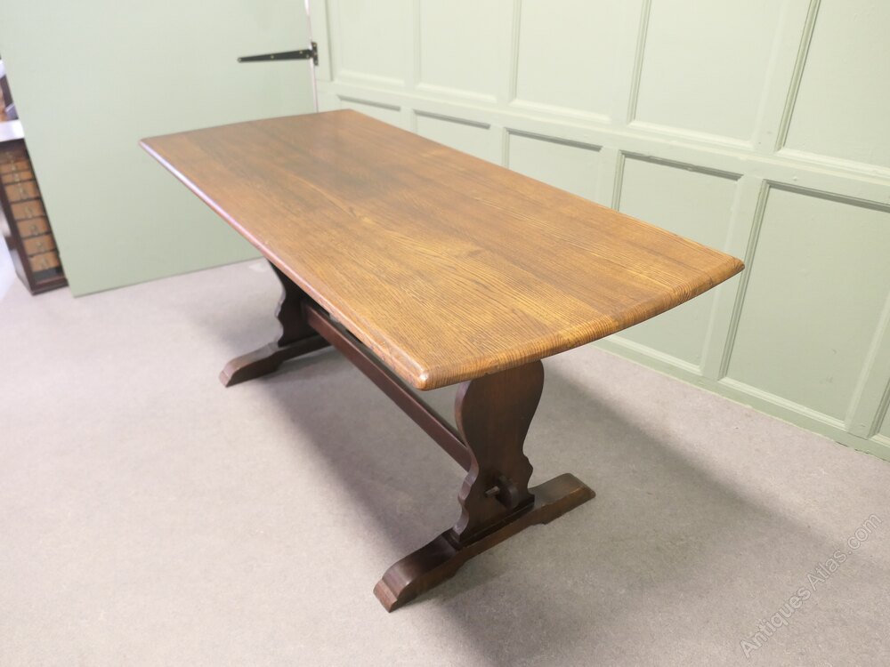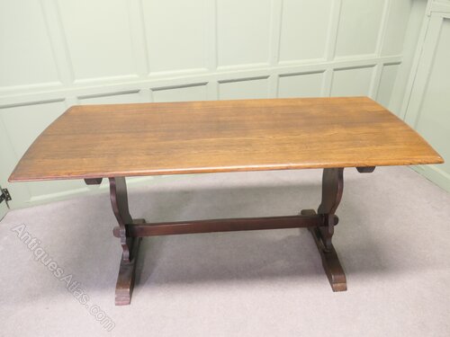 This is a good quality Country Oak Table in the refectory style, the table top has a chamfered edge with a delightful shape, it is rectangular with curved ends
