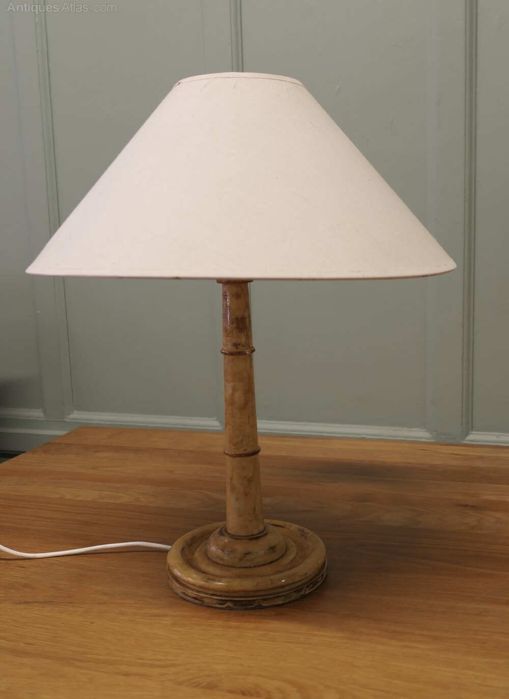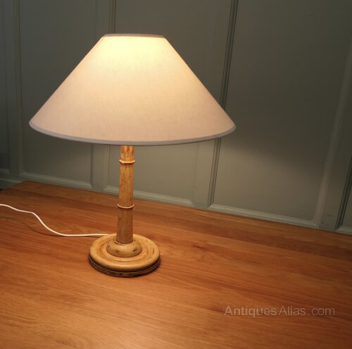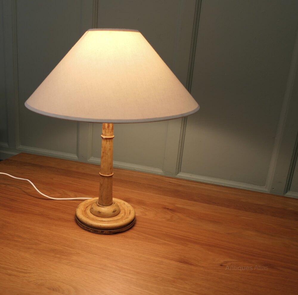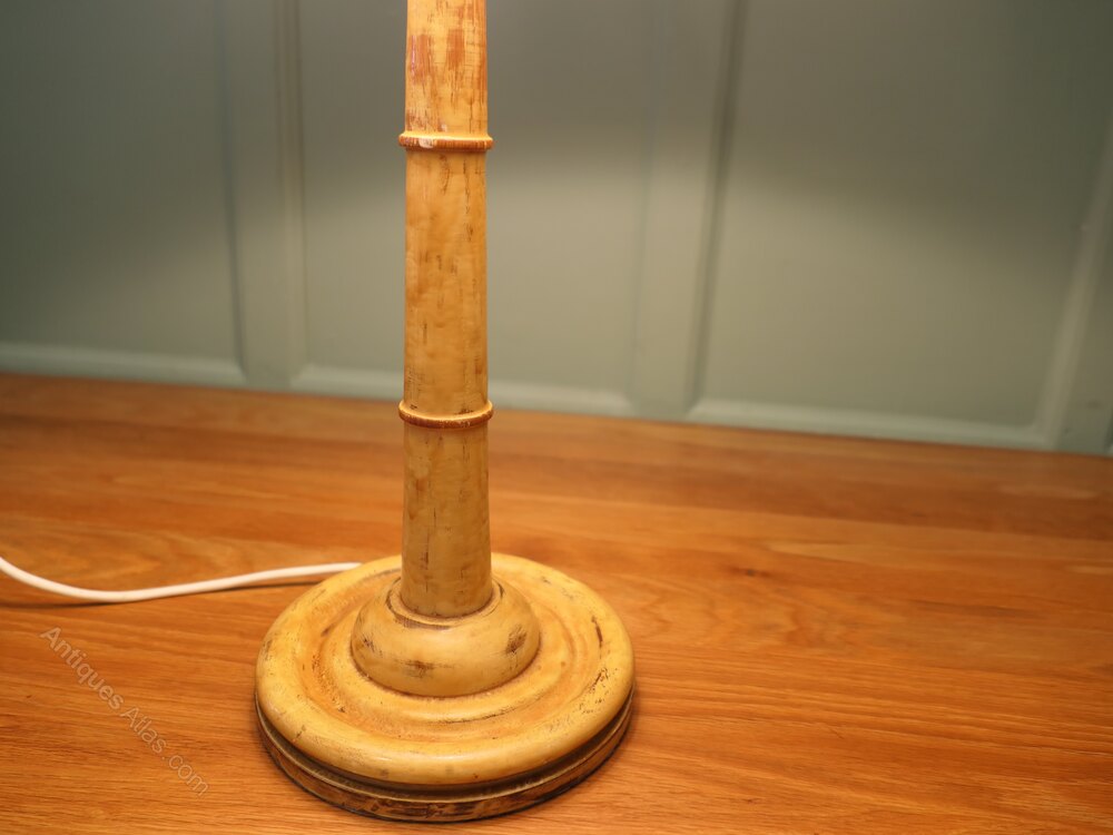 A very pretty piece, the lamp has a turned wooden candlestick base, the lamp is beautifully hand carved to look like bamboo