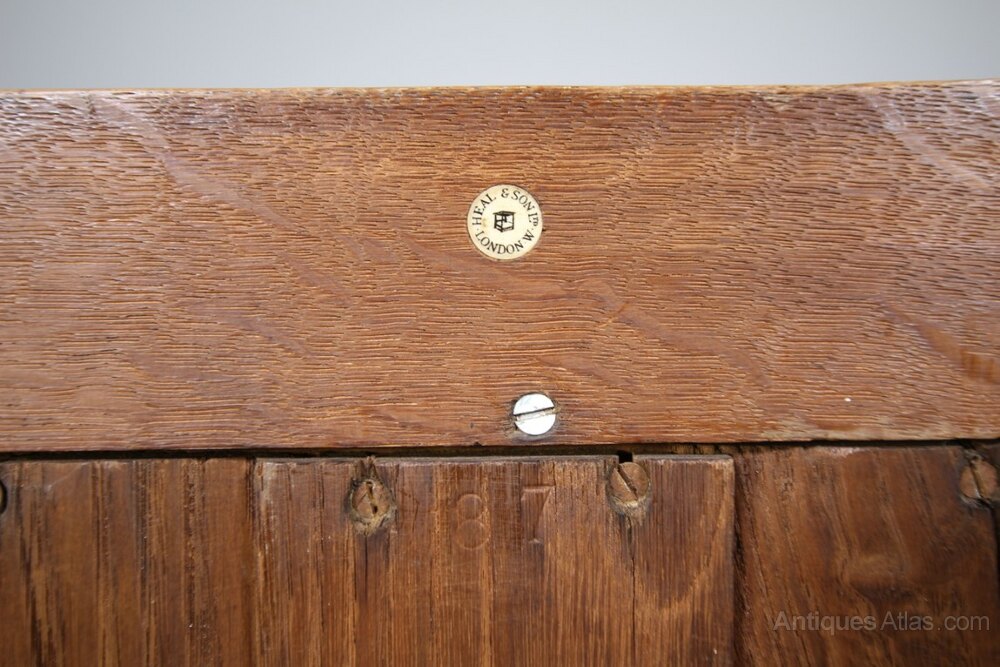 Heals Edwardian Antique Oak Open Bookcase - Label