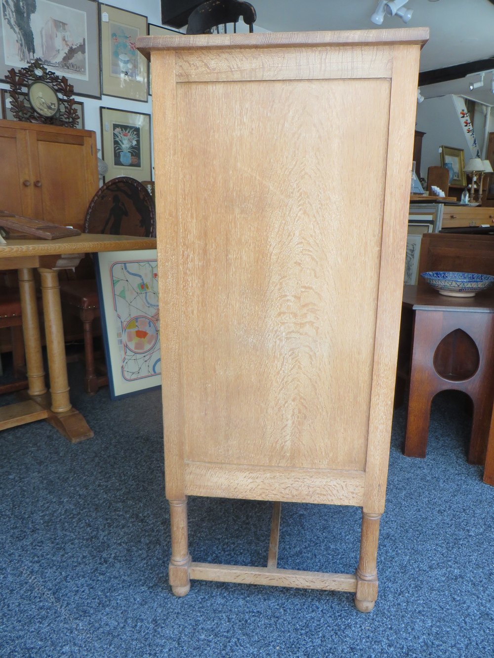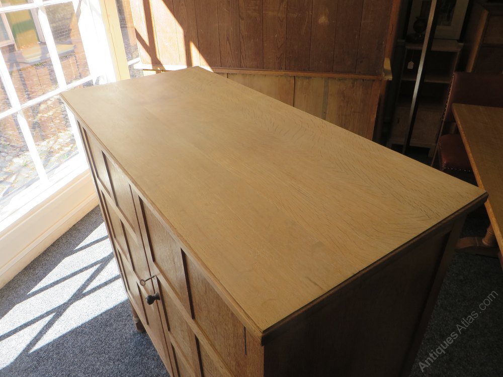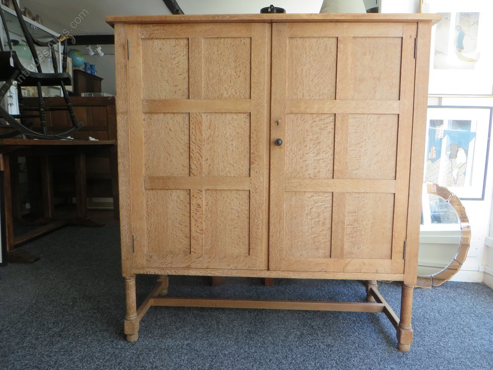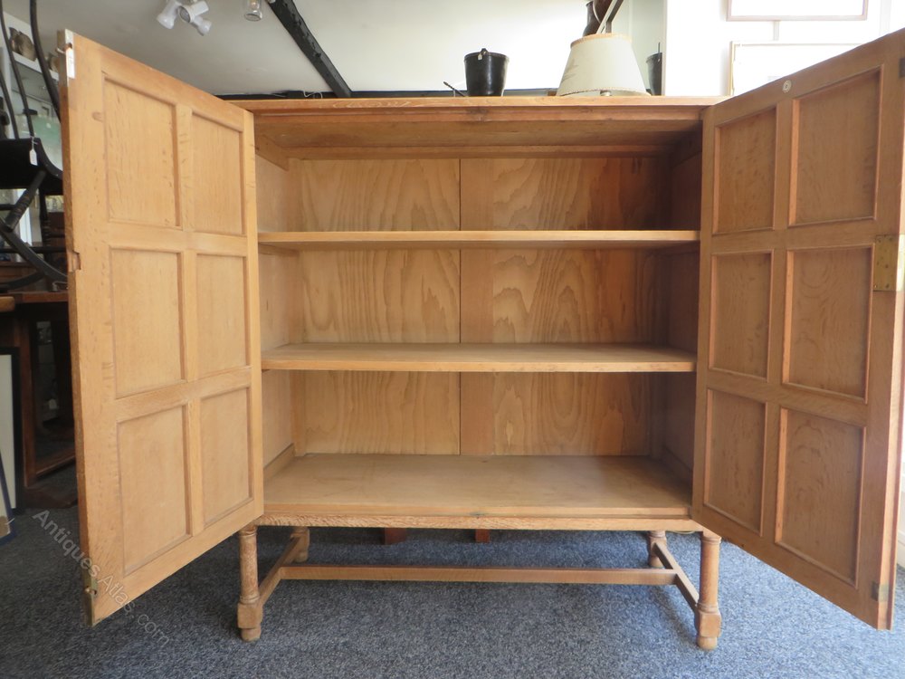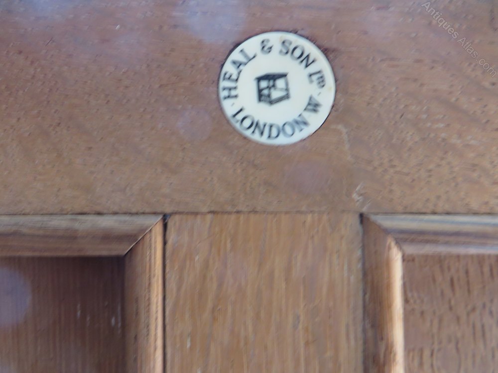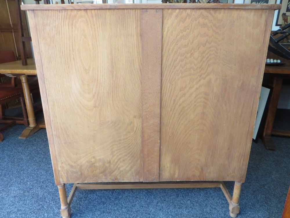 Heals limed oak cupboard with twelve 1/4 sawn fielded door panels and two shelves also key.