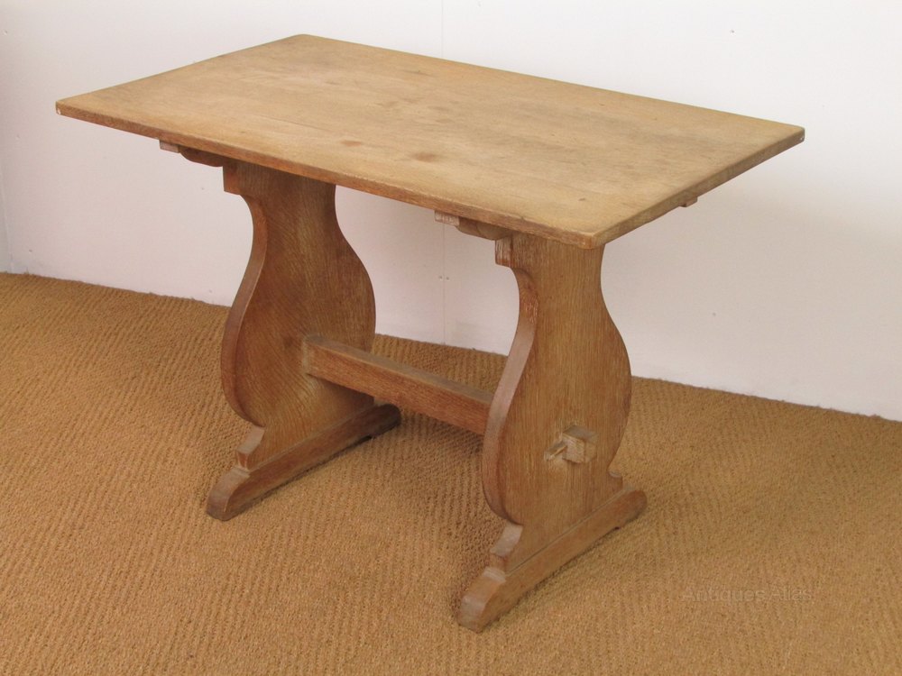 A small limed oak table by Heal's c.1930. Ideal for use as compact dining table or as work / writing table / desk. Constructed in solid well figured quarter sawn oak.
