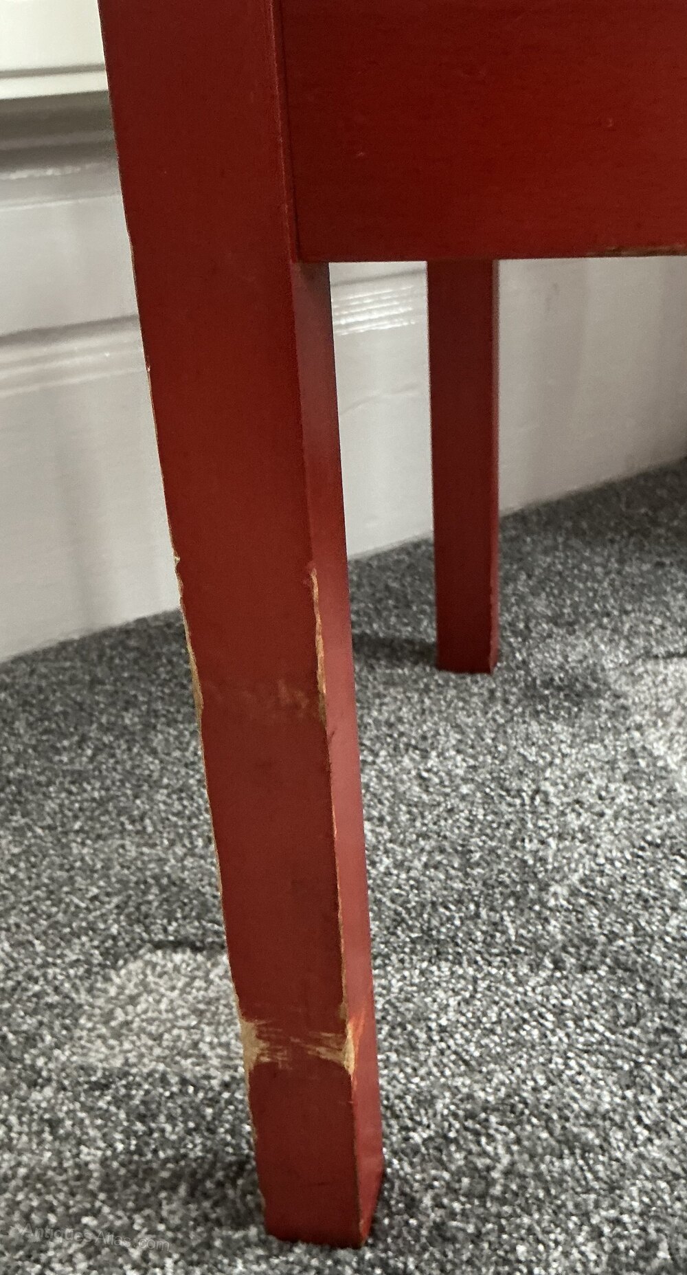 • Materials: Red-stained ash, elm, plywood, upholstered seat
