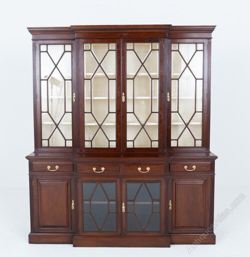 The Lower Section of the Bookcase Having 2 Astragal Glazed Doors with Bevelled Glass Flanked By 2 Panelled Cupboards above These There are 4 Mahogany Lined Drawers with Swan Neck Handles.