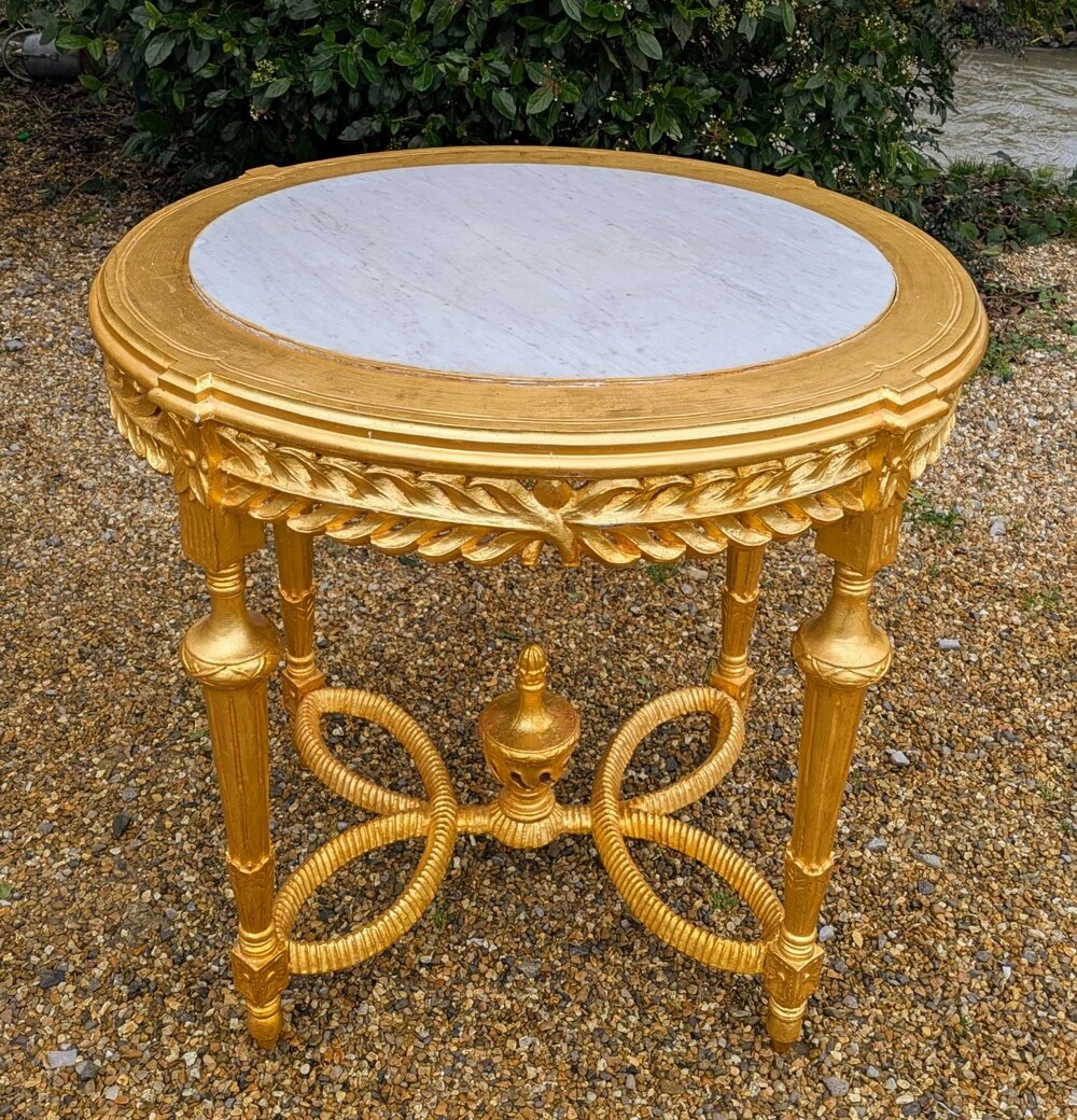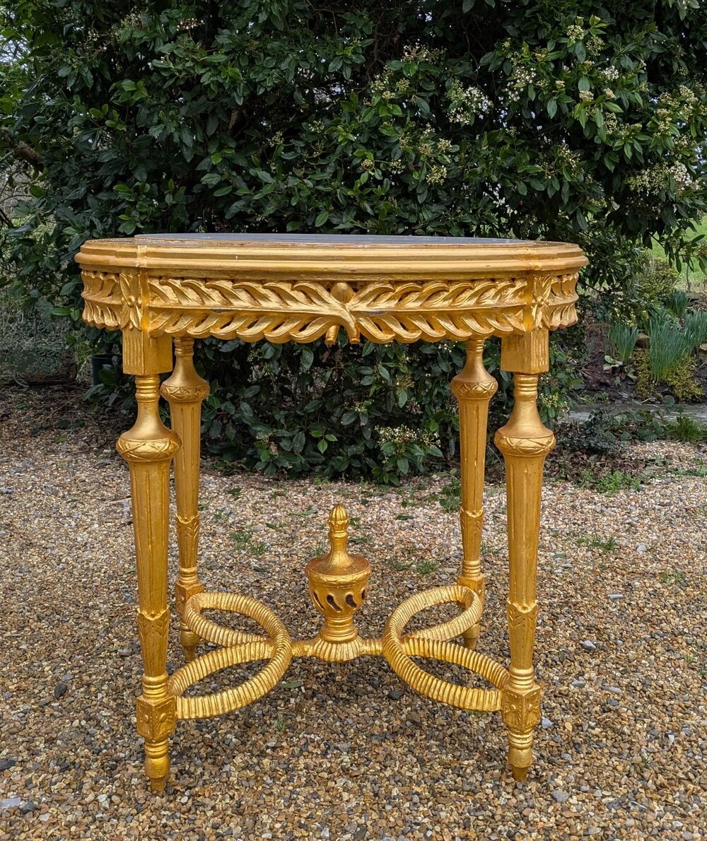 This is an impressive large Rococo style Giltwood table with inset marble top and large central urn.