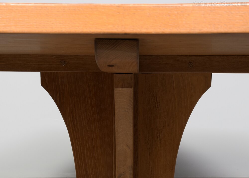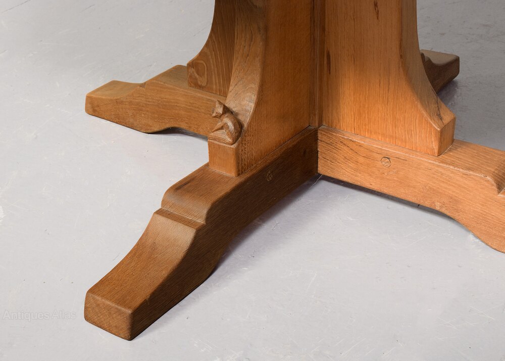 The full fox carving shows this table was made by Don Craven, Oldstead, Thirsk (who trained with Robt Thompson). Malcom “Benny” Pipes was also known as Foxman, but he used low-relief fox head carvings as a signature