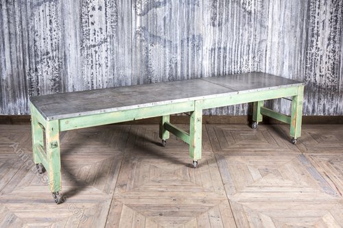 Introducing this fantastic rolling factory table – a genuine piece of industrial antique furniture, looking for a new home.