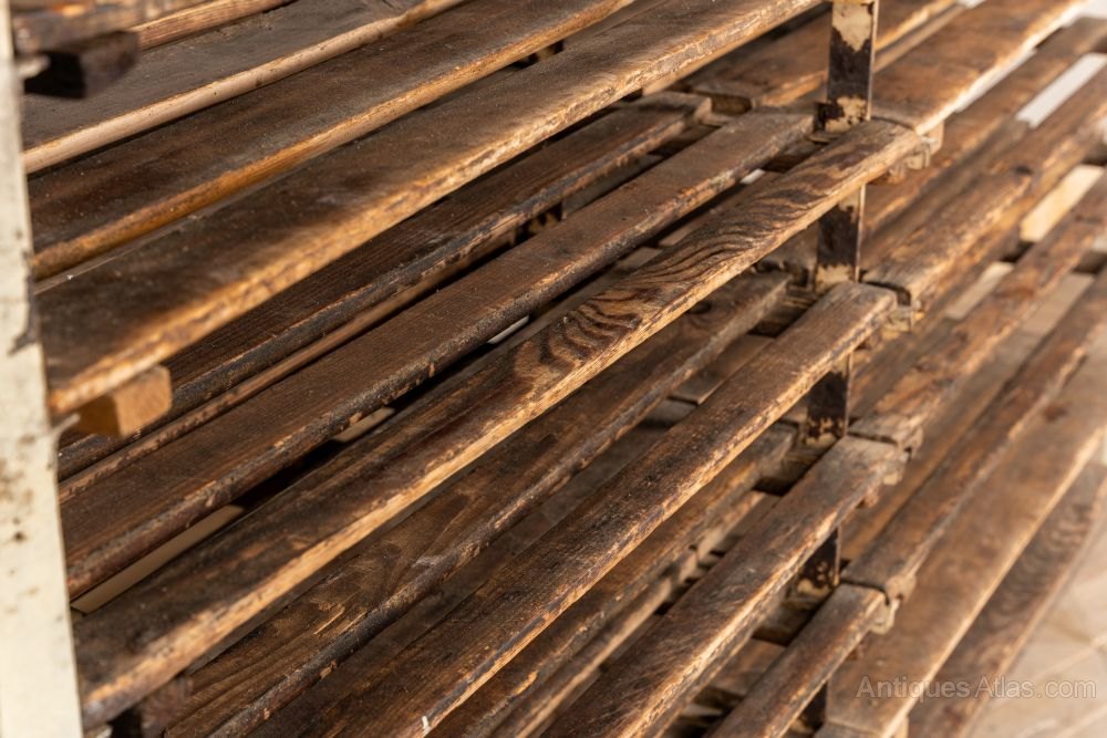 Vintage Industrial Shop Display Shelving Unit with distressed, authentic character. Great for holding t-shirts and jeans.