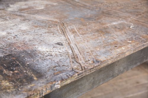 Incorporate industrial style into your home or business with this large, vintage work table.