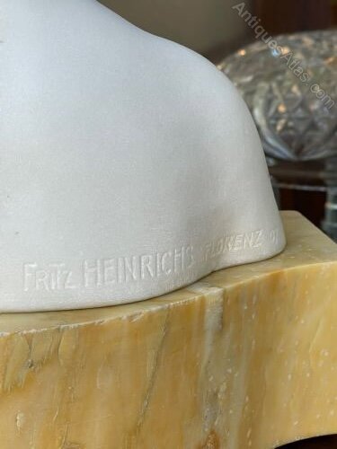 A superb early 20th century Italian carved white Carrara marble head and shoulders of a young boy on a marble plinth. Signed Fritz Heinrichs, Florenz and dated 07.