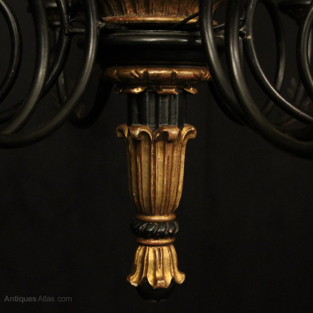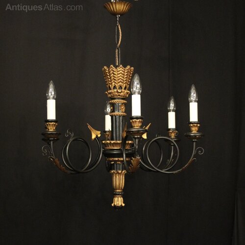 Italian Ebonised & Giltwood 6 Light Chandelier