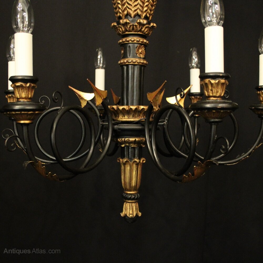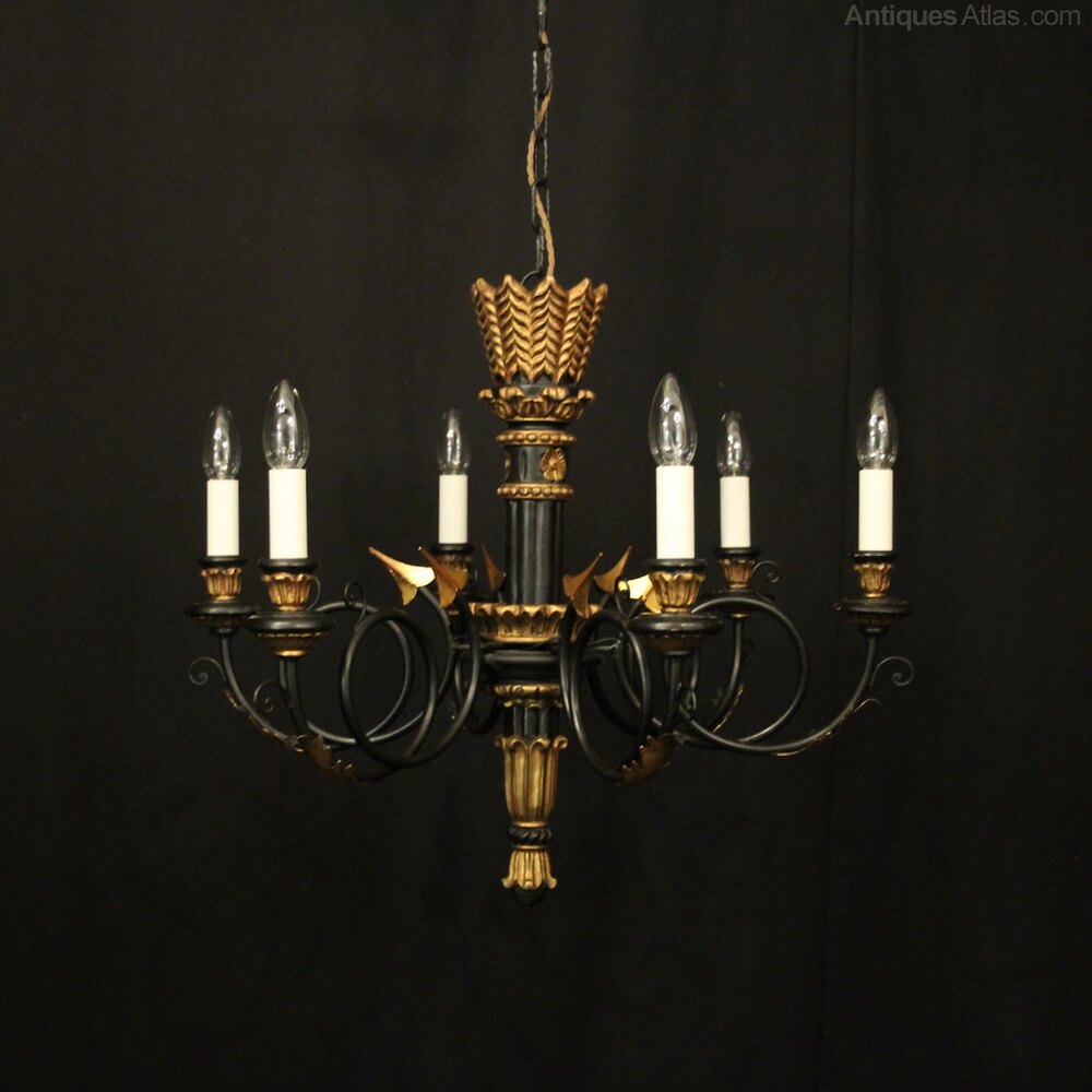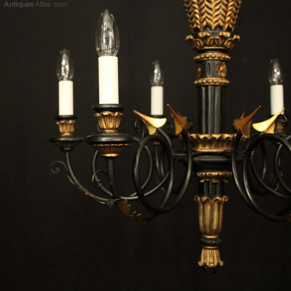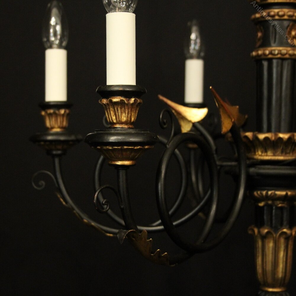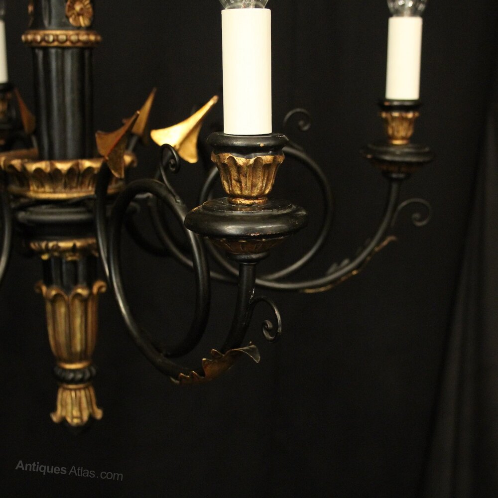 Italian Ebonised & Giltwood 6 Light Chandelier