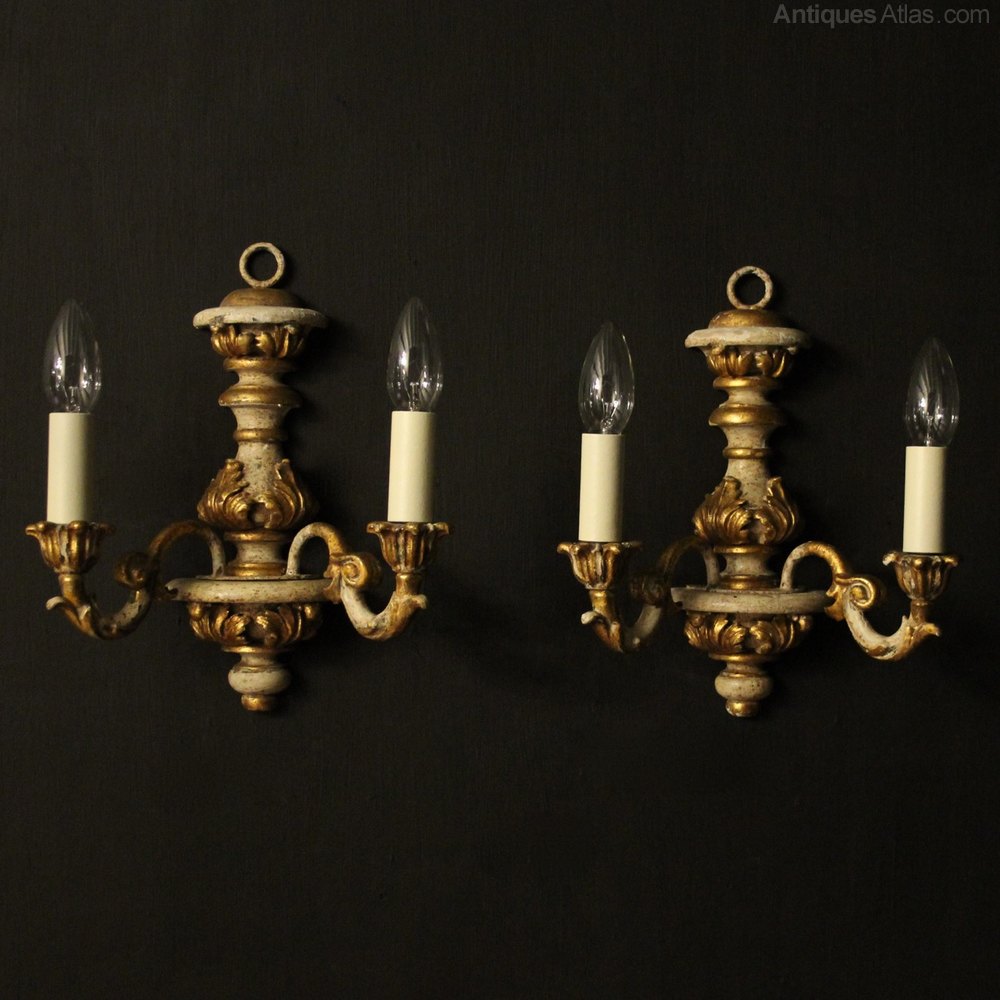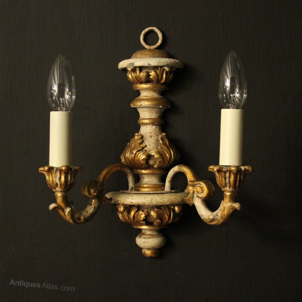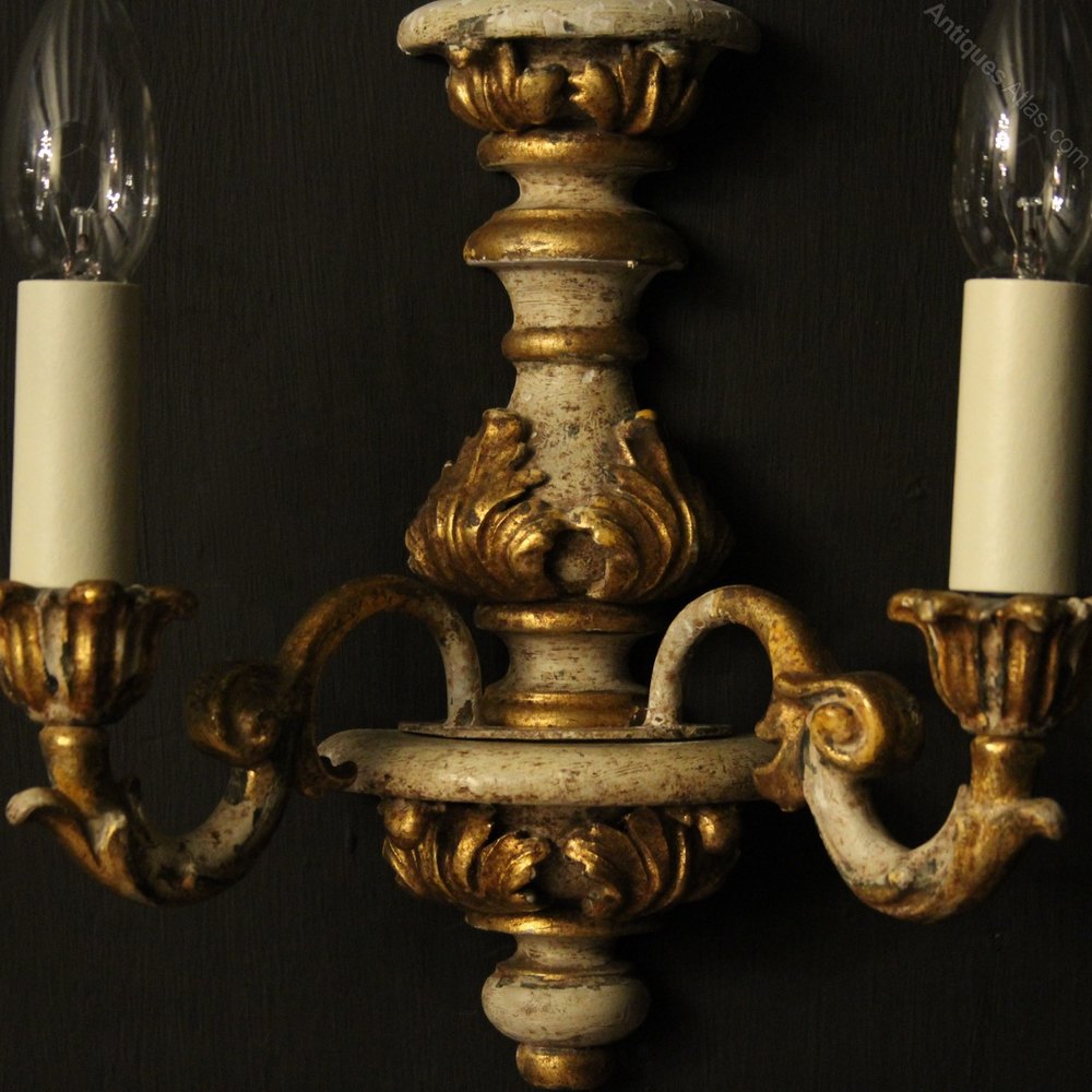 Florentine Silver Giltwood Antique Wall Lights