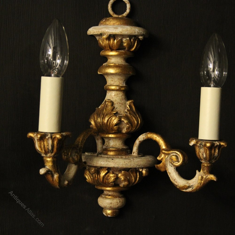 A decorative pair of Italian gilded polychrome wooden Florentine twin arm wall lights, the acanthus metal leaf scrolling arms with carved pierced leaf wooden bobeche drip pans and bulbous candle sconces, issuing from an elaborate Acanthus leaf carved wooden backplate with gilded leaf decorative embellishments. Fully rewired and PAT tested. All our wall lights come with aged brass screws for fixing and spare bulbs.