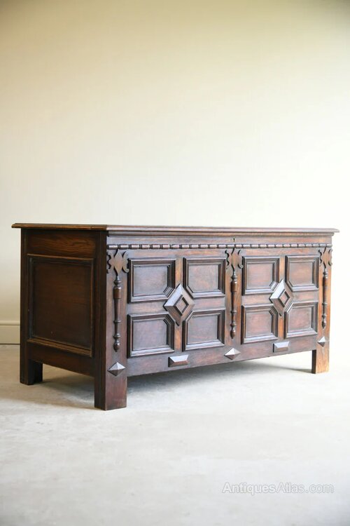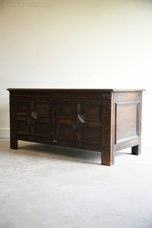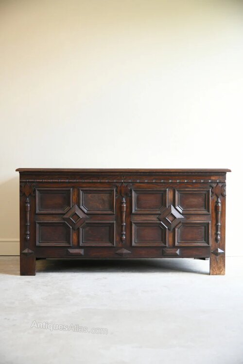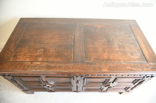 Panelled Oak Coffer with Carved Decoration, c.1900