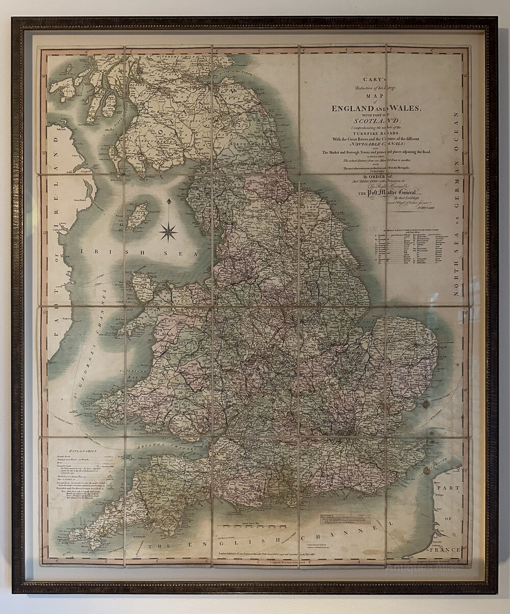 An early 19th century George III framed pocket map by John Cary dated 1816