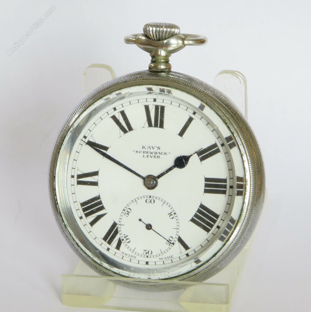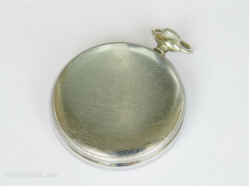 The watch measures 54mm diameter excluding the winding stem and the loop. The case is chromium plated nickel. The case is in good condition, just general light marks. Both the bezel and the case back are a screw fitting, a good sign of quality.
