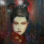 Vintage Geisha Portrait, Japanese, Textile Relief