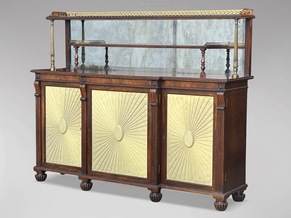 Both the construction and the refined overall design are strongly characteristic of Gillows’ work. The rosewood has developed a beautiful, rich patina over time, enhancing the depth, warmth and natural figure of the timber, a hallmark of high quality Regency furniture. Sturdy, strong and ready for immediate use, it offers the ideal blend of decorative presence and everyday practicality. Traditionally, chiffoniers or sideboards were intended for the storage of dinner ware, cutlery, bottles and linens, and examples from the late 18th and early 19th centuries are highly prized for their superior cabinetmaking, balanced proportions and exquisite choice of materials.