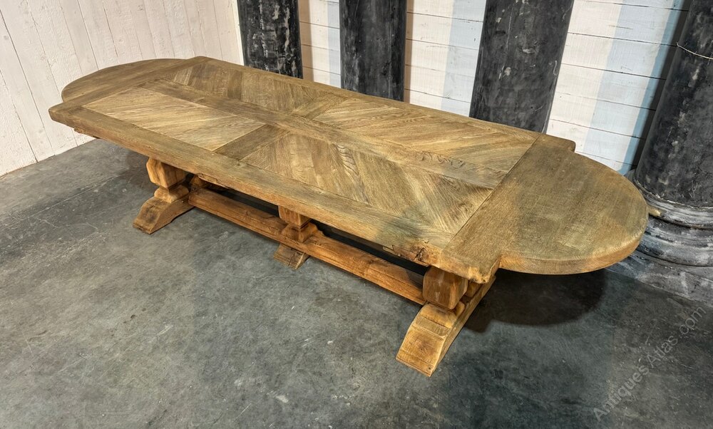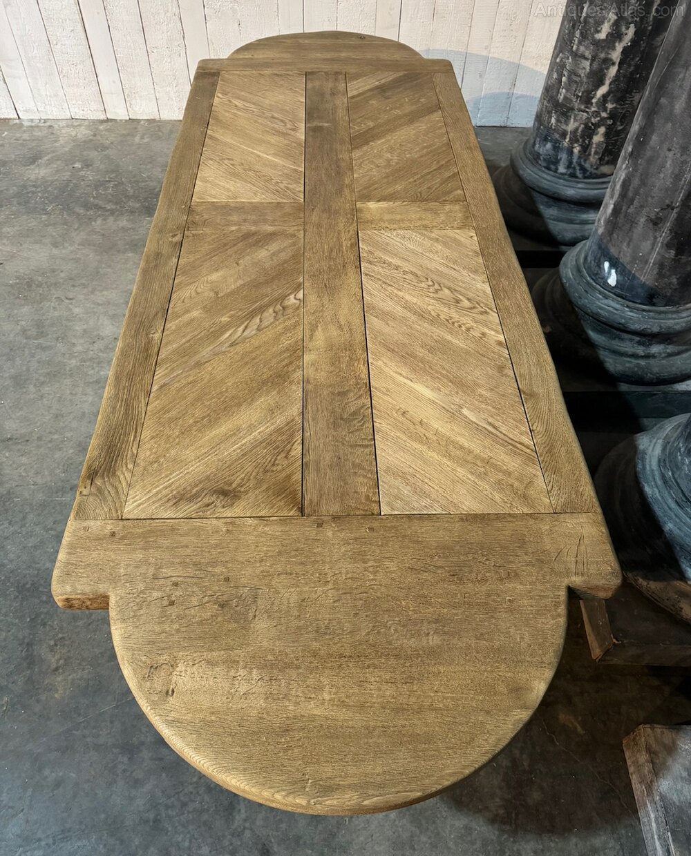 A lovely French Solid Oak Farmhouse Table 3 Meters in Length and a very good Depth at 100cm. Dating to the early 1900s and of good quality construction. We have bleached it for a lighter look and in excellent original condition. The top comes off for easy access into the home.
