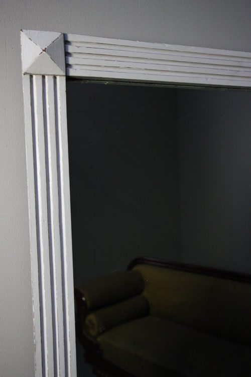 The painted pine mirror fame is architectural in style and is of grand proportions.