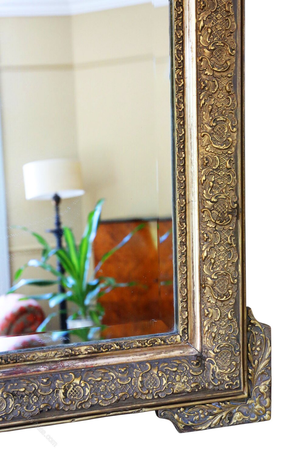 Large 19th Century Antique Gilt Overmantle Wall Mirror – Ornate Gold Frame, Vintage Statement Decor