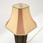 This is of superb quality, it is large and very heavy, being made of mostly solid metal. There are gorgeous traditional decorations throughout, with a solid wood top and base. This comes with a lovely silk shade that matches it very well.