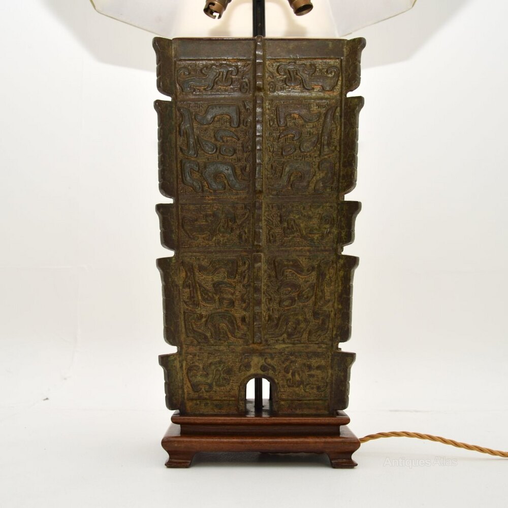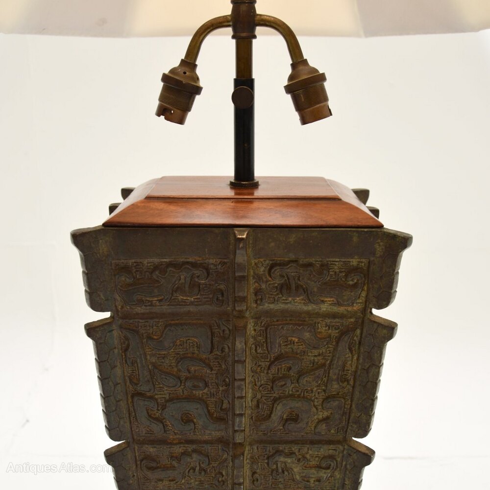 Large Antique Oriental Bronze Table Lamp