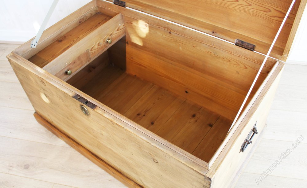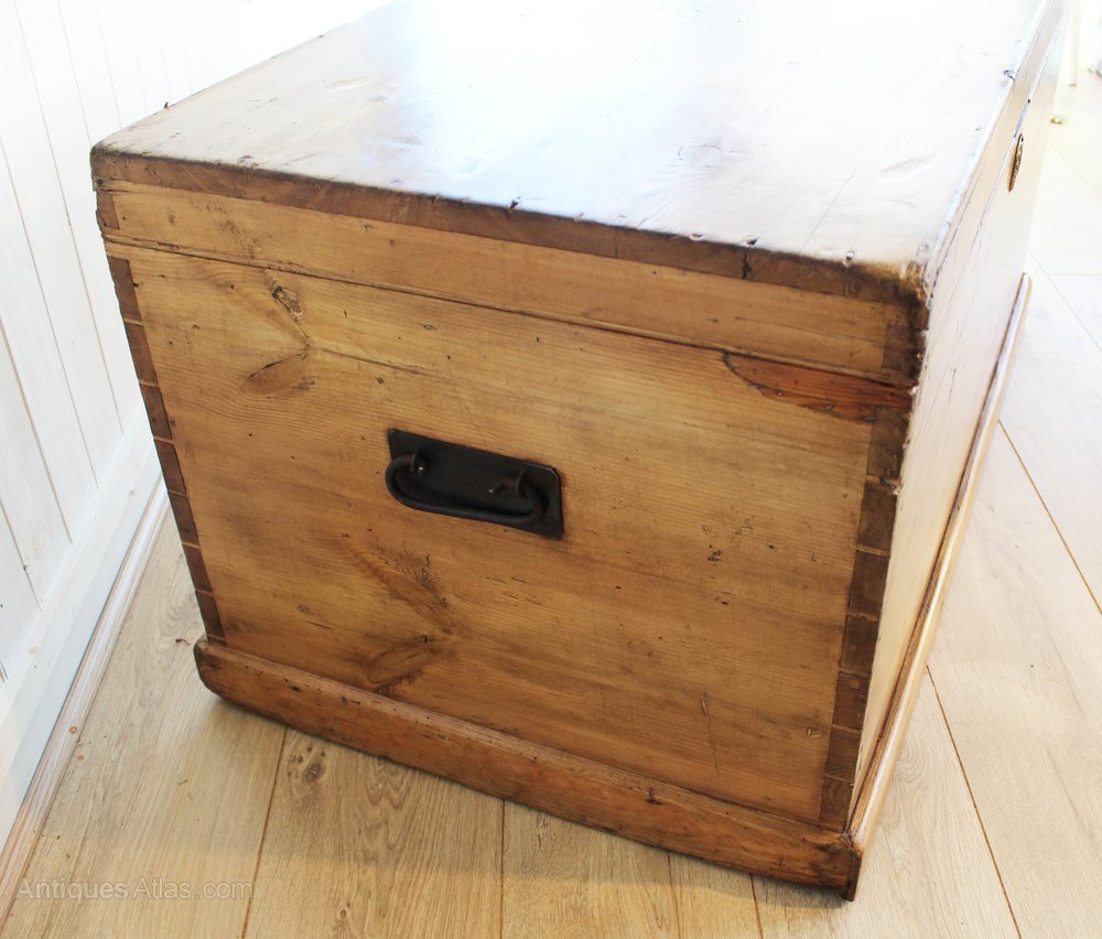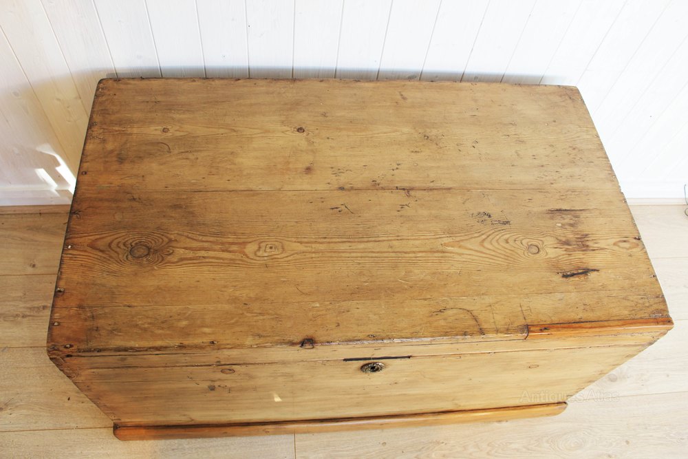Large Antique Pine Trunk, Blanket Chest, Toy Box