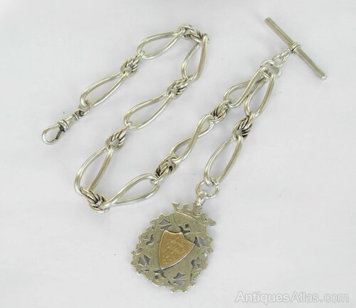 Large antique silver watch chain, 1899.