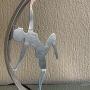 A fabulous Art Deco chrome table lamp of large size, featuring a chrome silhouette of an elegant lady, reaching to the an original baby blue glass globe, all standing on a stepped base. Circa 1920-1925.
