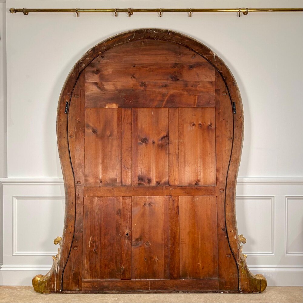 A very large William IV giltwood mirror, retaining the beautifully burnished water gilding and panelled back. Having the original sparkling mercury plate glass with minor foxing and good clear. reflection . The heavily moulded shape frame with bold acanthus scrolled carving. Lovely untouched condition throughout. English, Circa 1830.