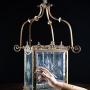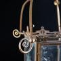There is some light wear commensurate with age as is to be expected, namely some light scratches to the glass in areas and a very small nibble to the circular cut out edge in the bottom panel. There are two small cut outs in the brass lantern frame (please see photographs) these are uniform, in identical places in the frame and thus appear deliberate, likely to enable glass extraction.