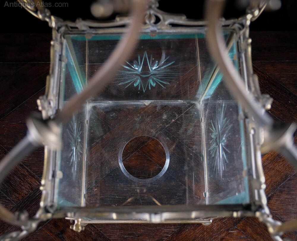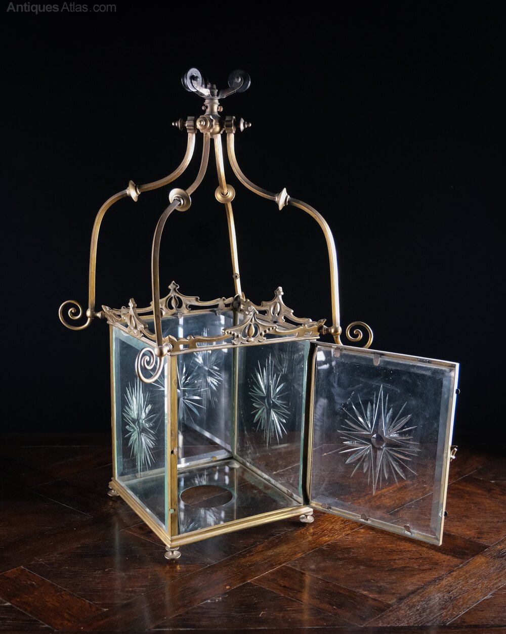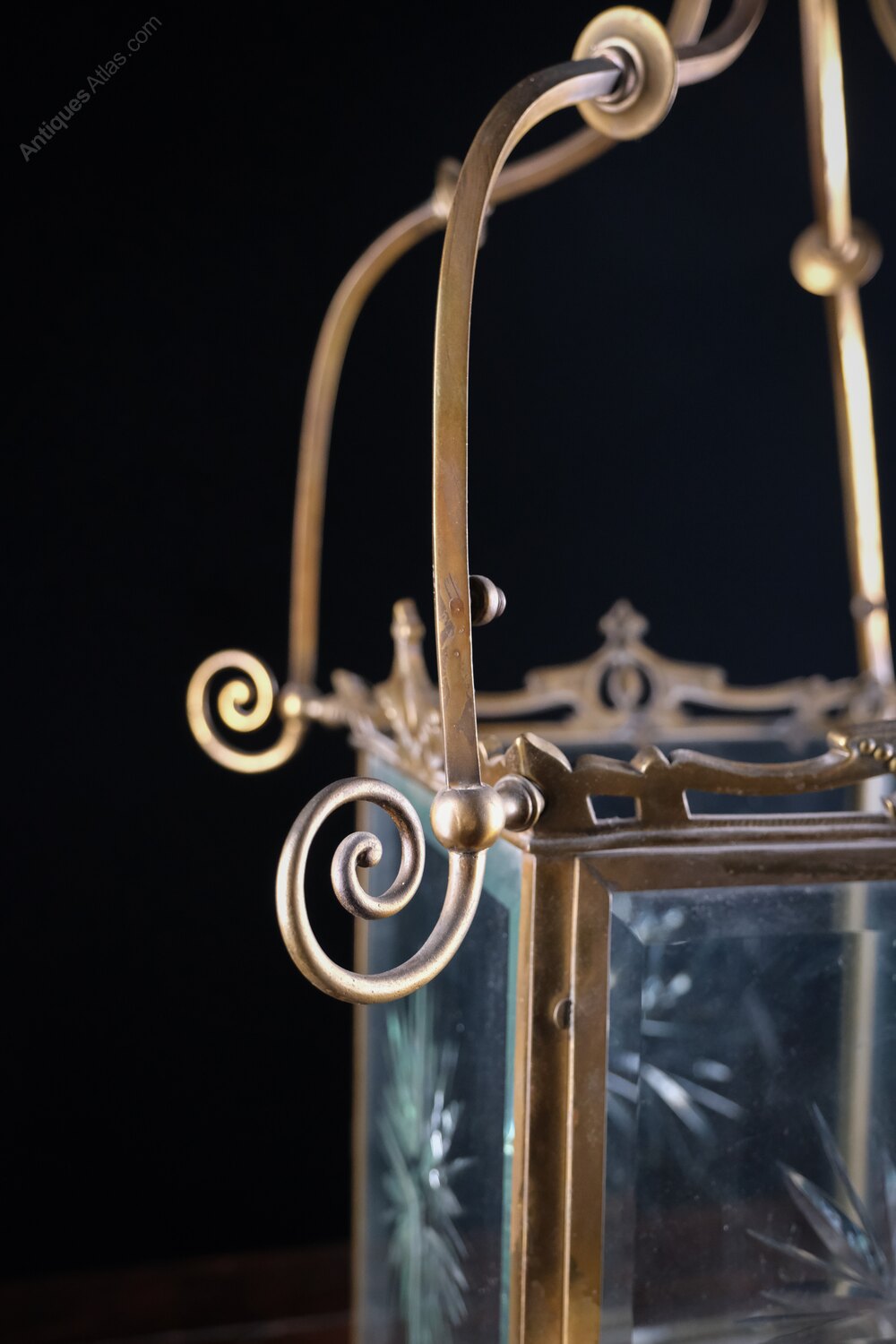 Large Brass & Cut Glass Hall Lantern, c.1910