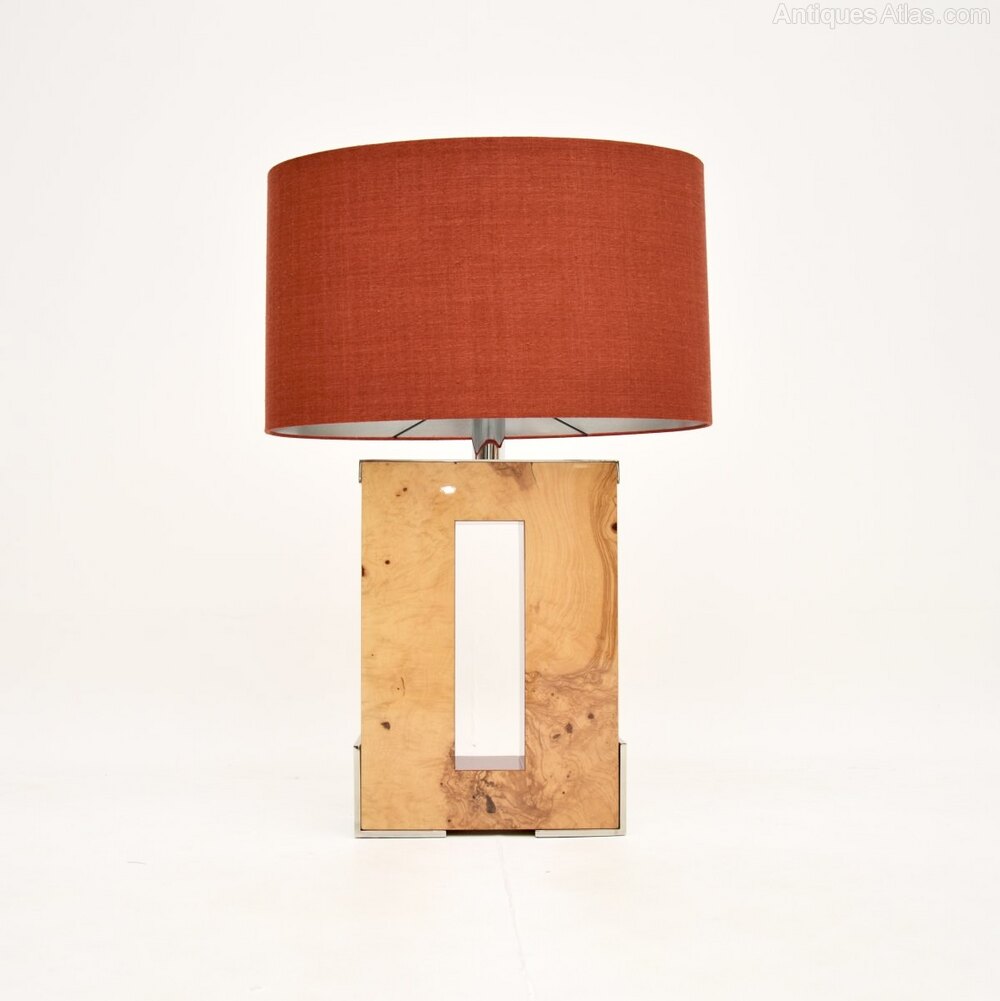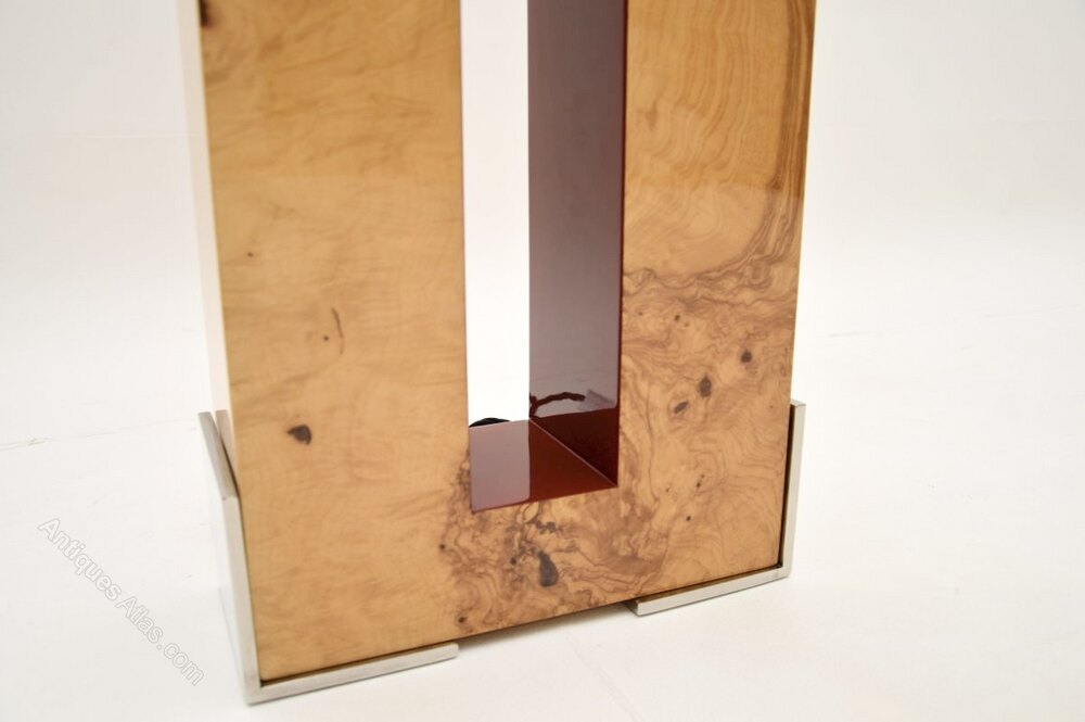 A fantastic and very large burr walnut and chrome table lamp by Oitoemponto, dating from the early twenty first century.