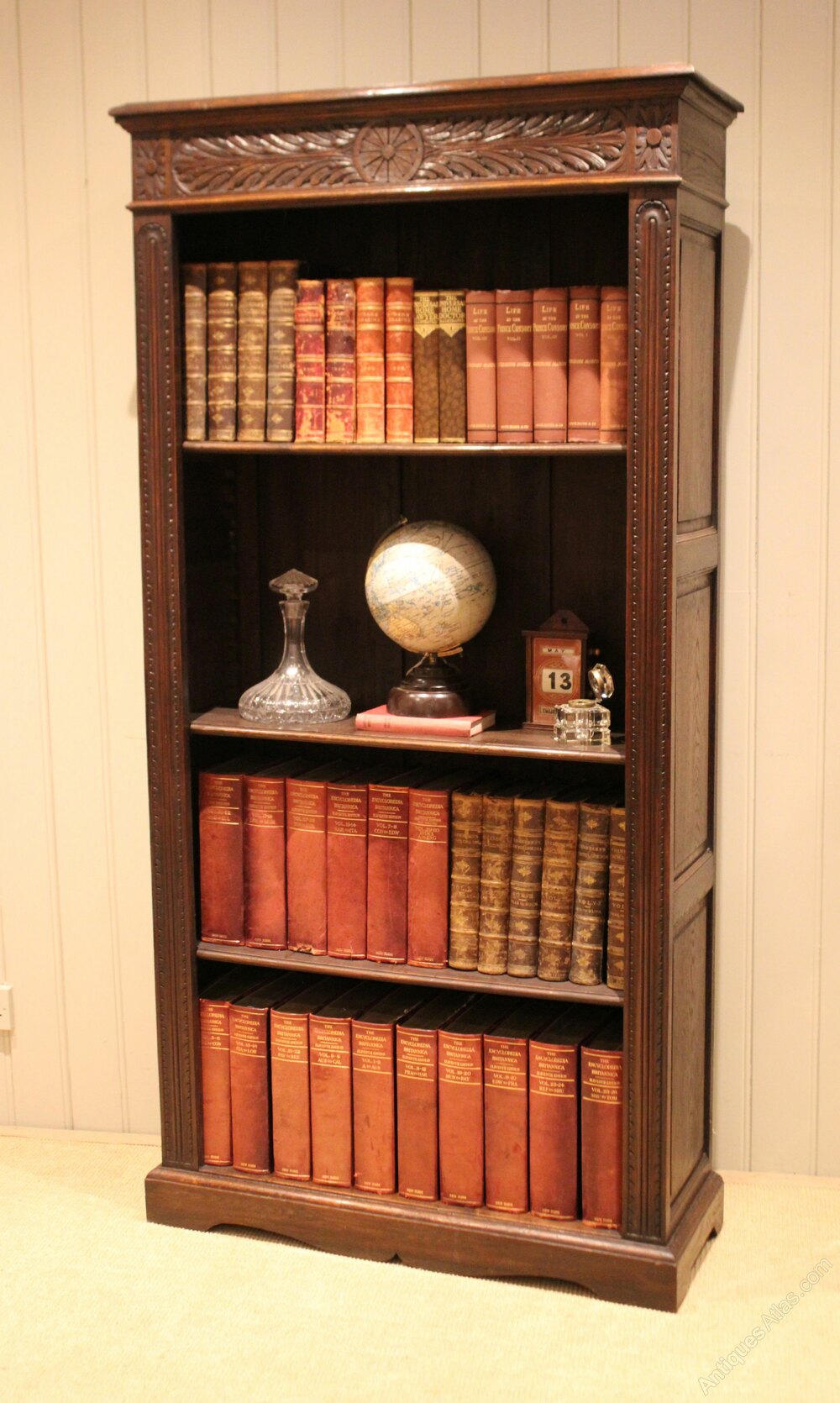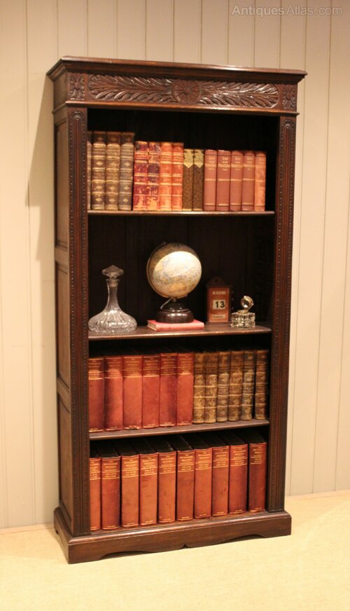 Large Carved Oak Open Bookcase