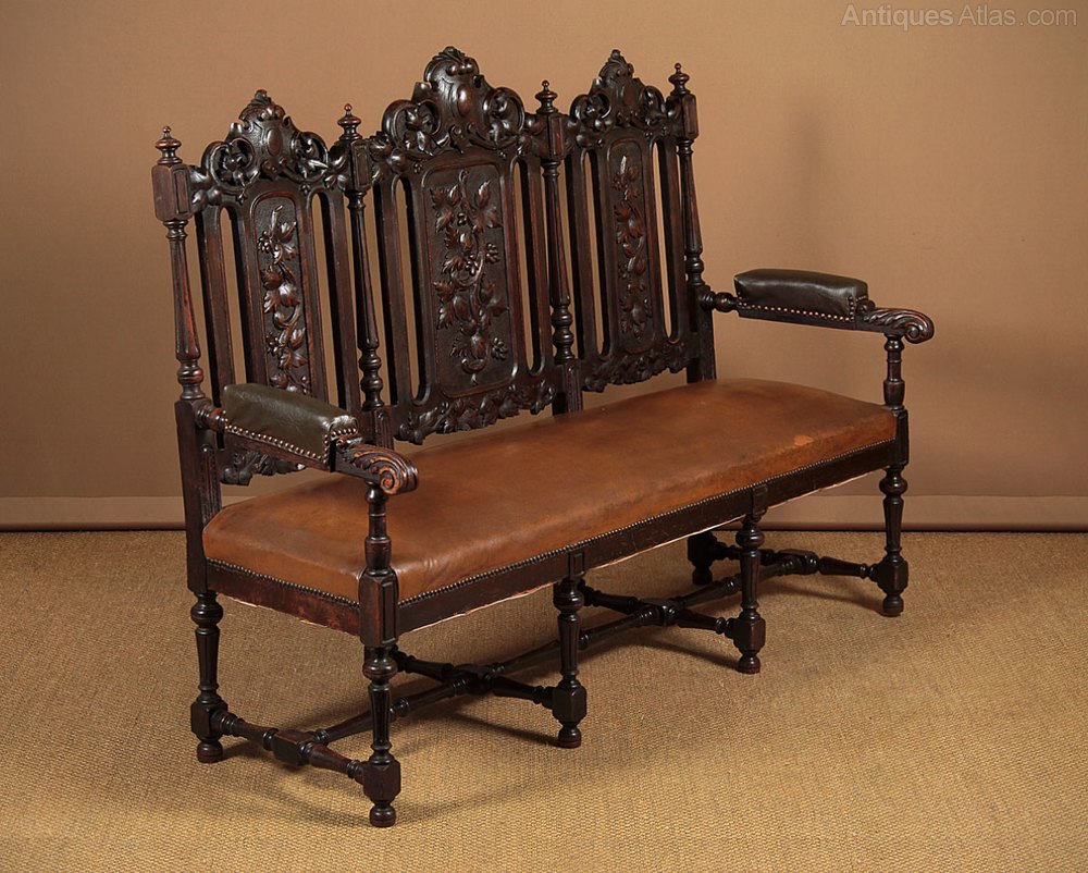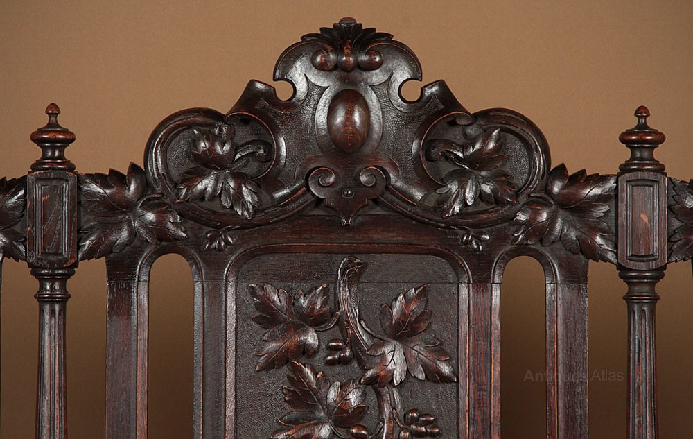 19th Century Heavily Carved Oak Bench