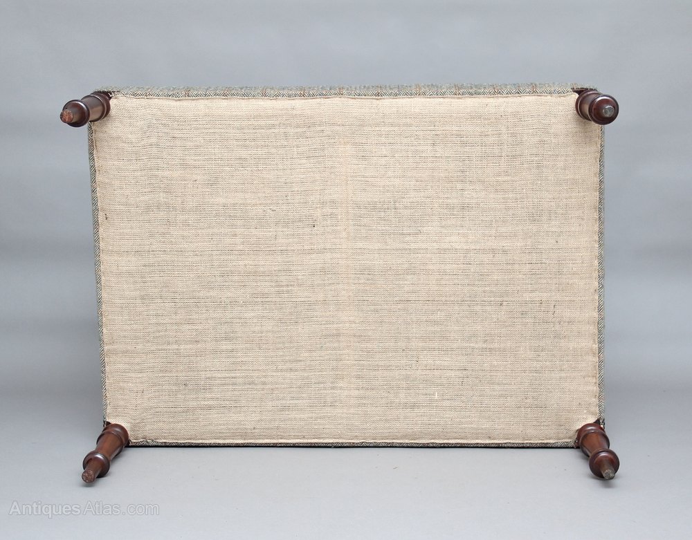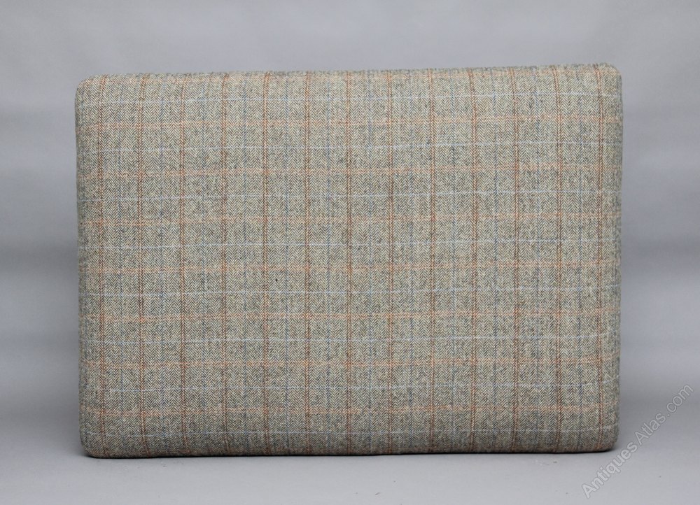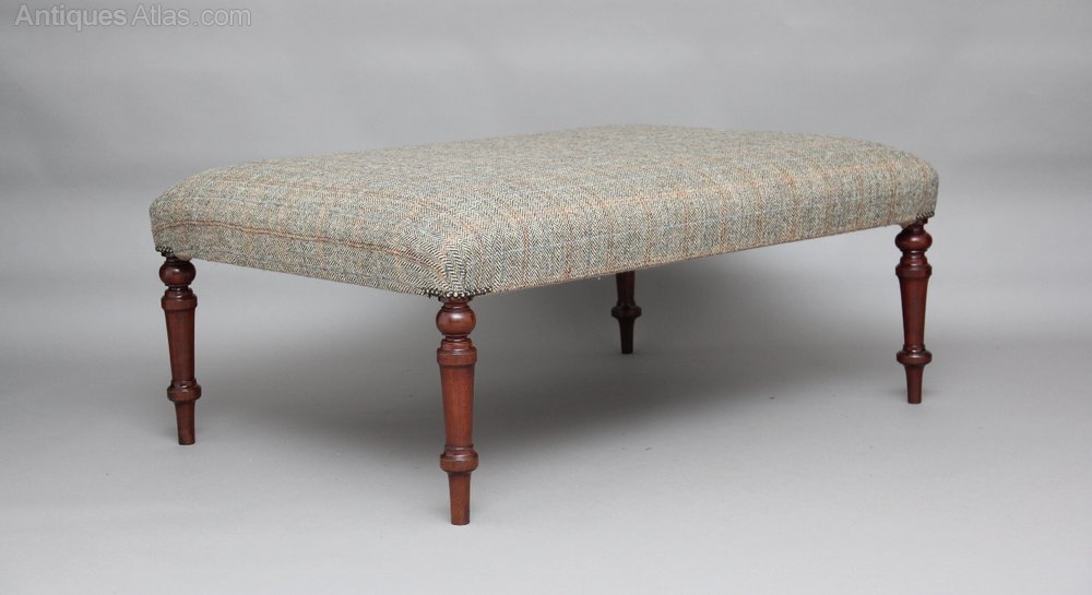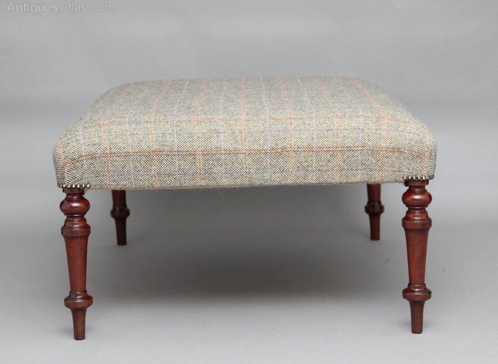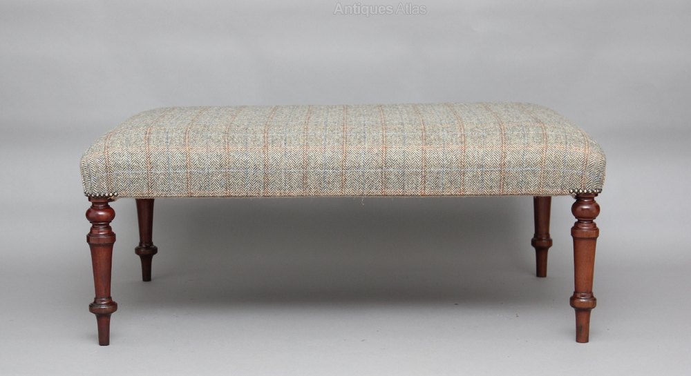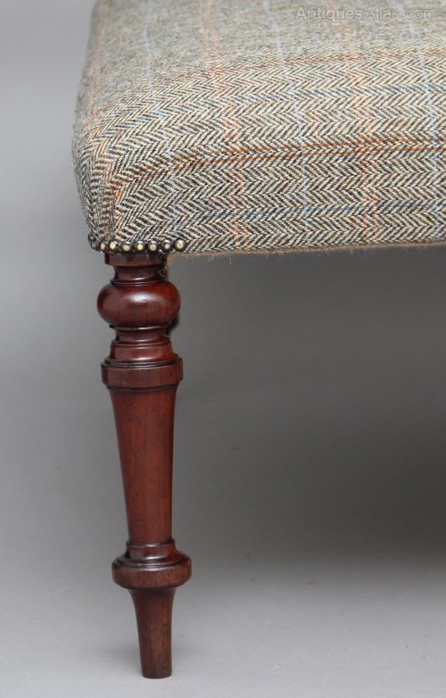 Mid 20th Century large centre stool upholstered in a Harris tweed fabric standing on nice turned mahogany legs.
