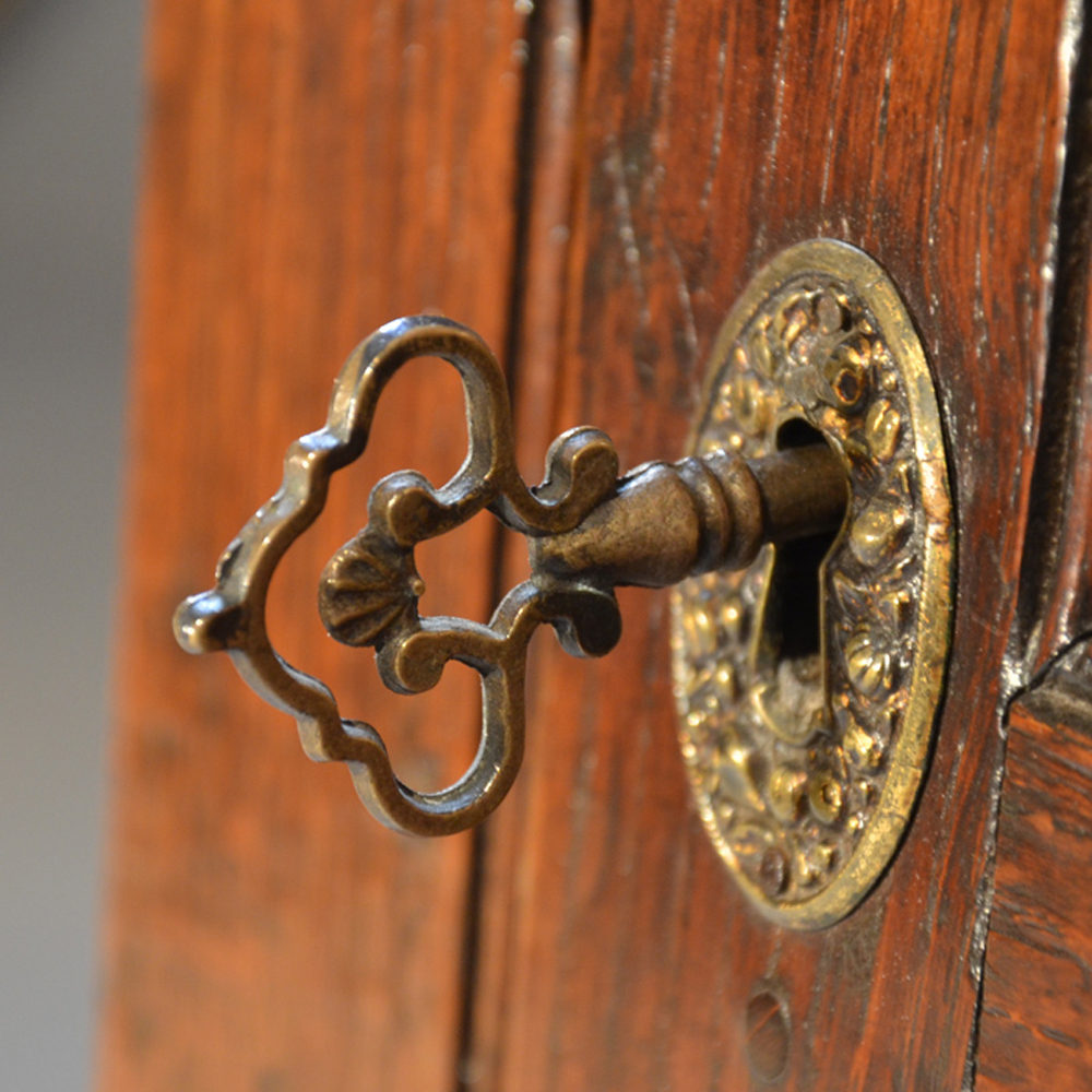 Externally the cabinet displays wonderfully with rich patina across the surface and warmth to the period brass pull and lock escutcheon. Brass fittings are in place to allow easy wall mounting.