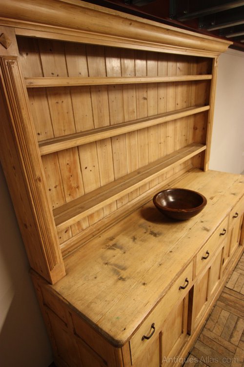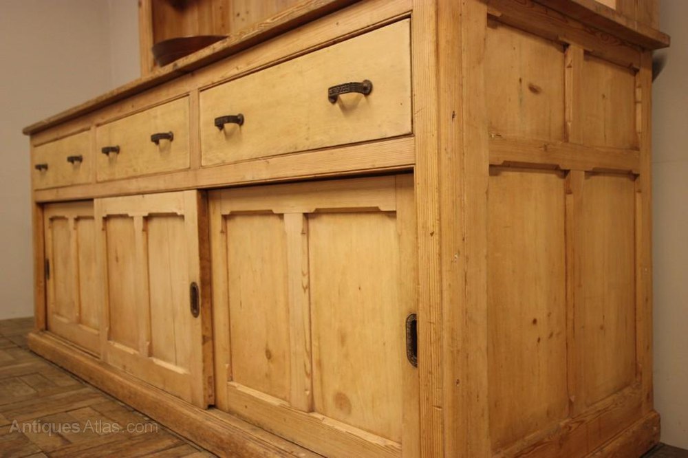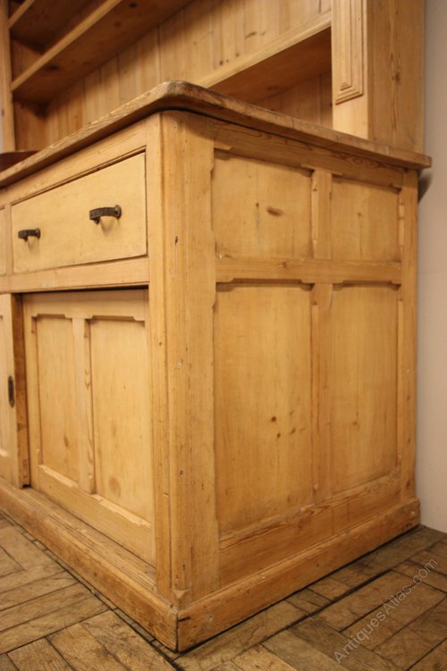 This is a superb late 19th century antique pine kitchen dresser, oversized and ready for work.