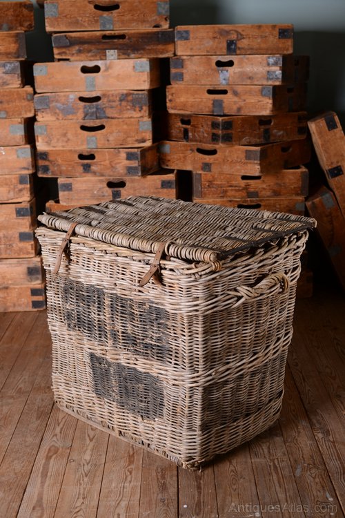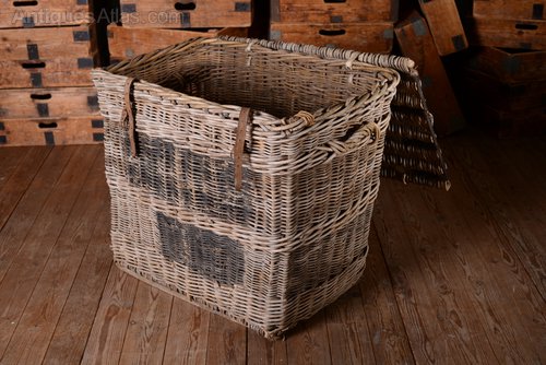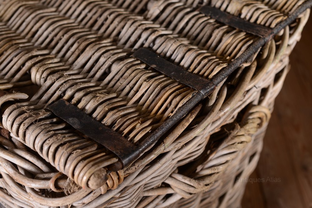 Large Edwardian Antique Woven Willow Laundry Basket.