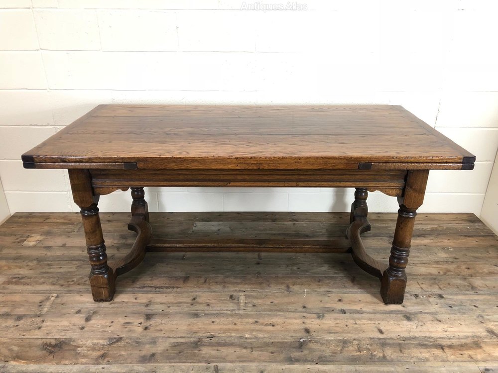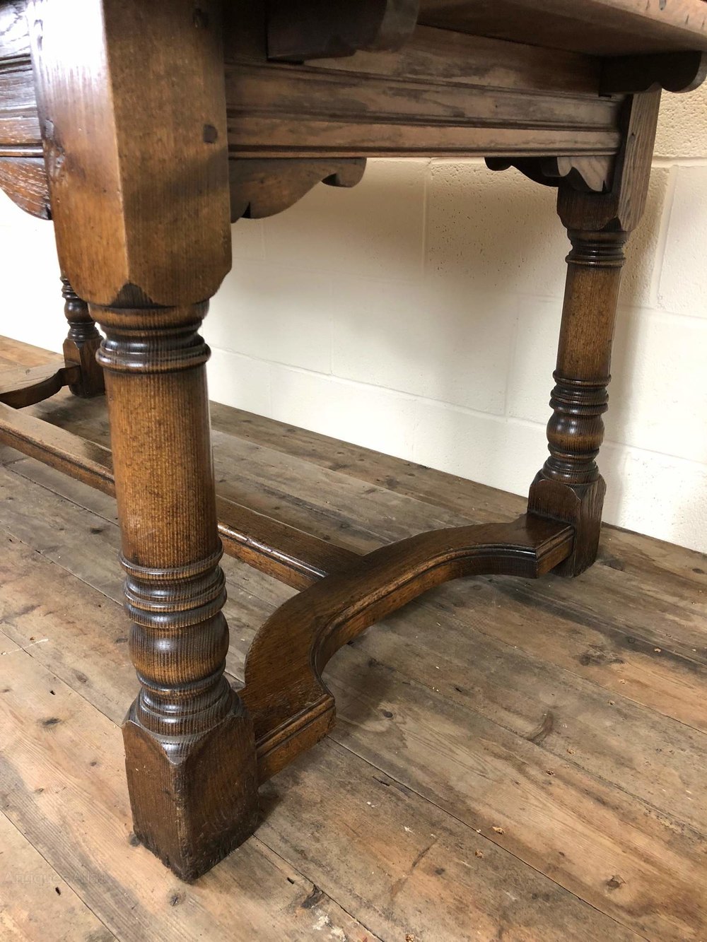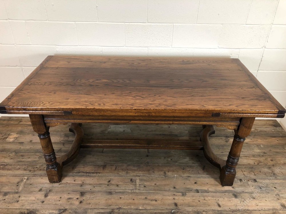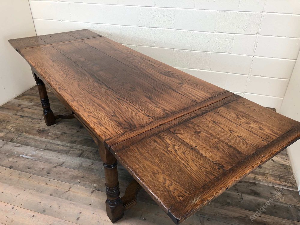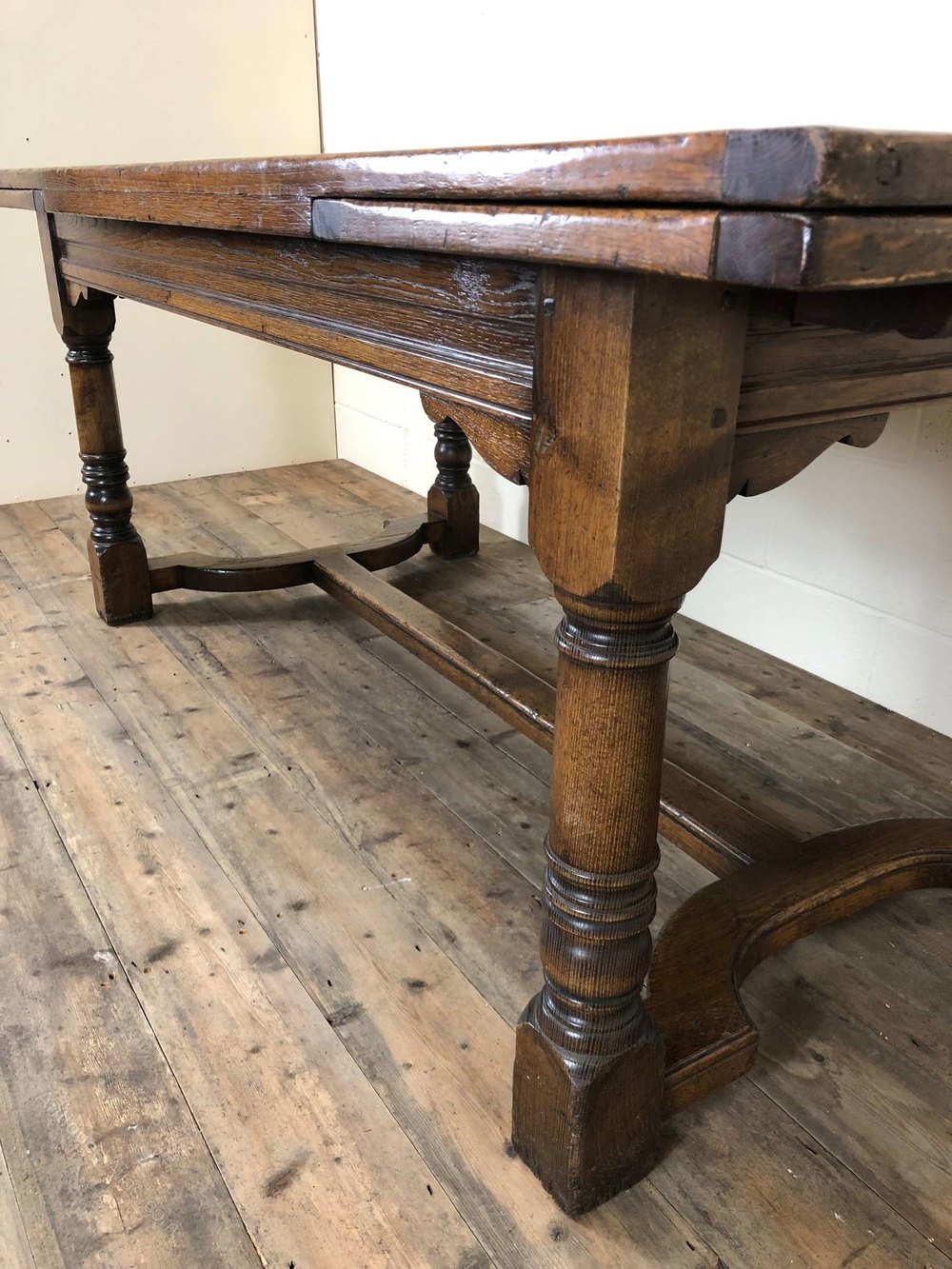A fantastic large extendable oak refectory style Monastic dining table with pull out drawer leaves to either side.