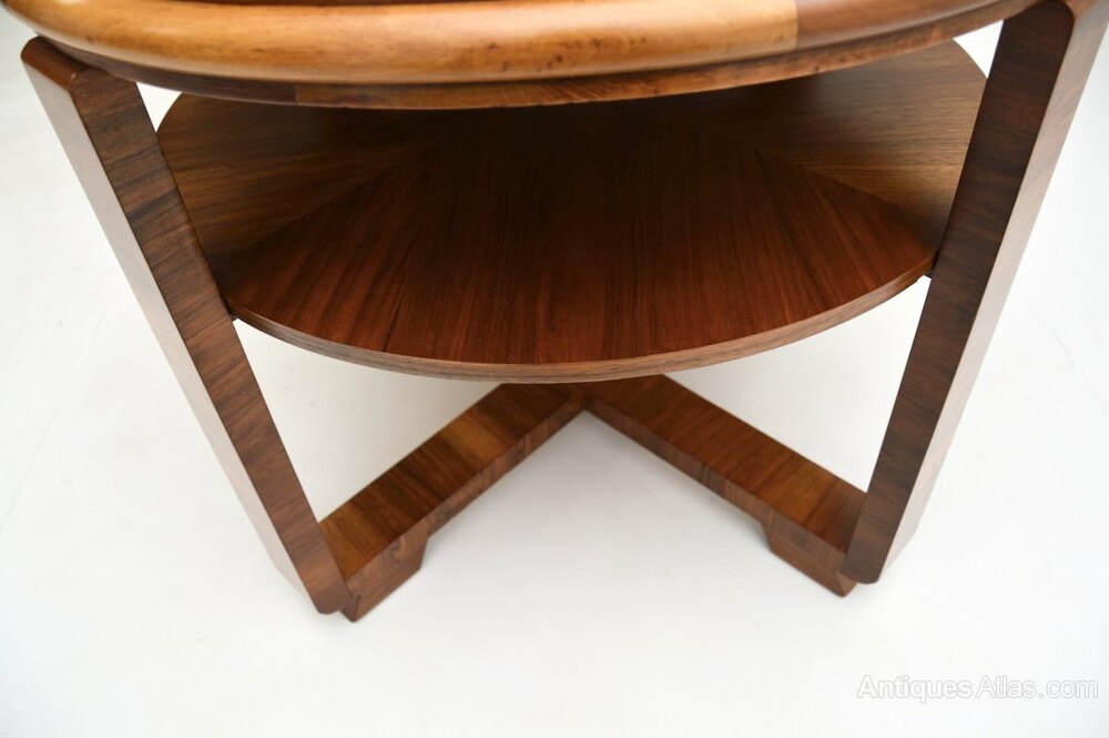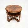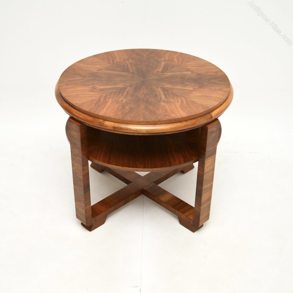 This is of outstanding quality, it is extremely well made and has a useful design. The circular top has a beautifully moulded edge and stunning figured walnut grain patterns. This stands on a wonderful base which crosses over at the bottom, sitting on platform feet, and it has a useful lower tier.