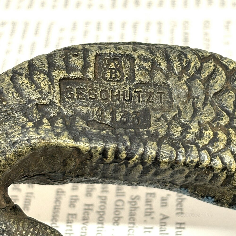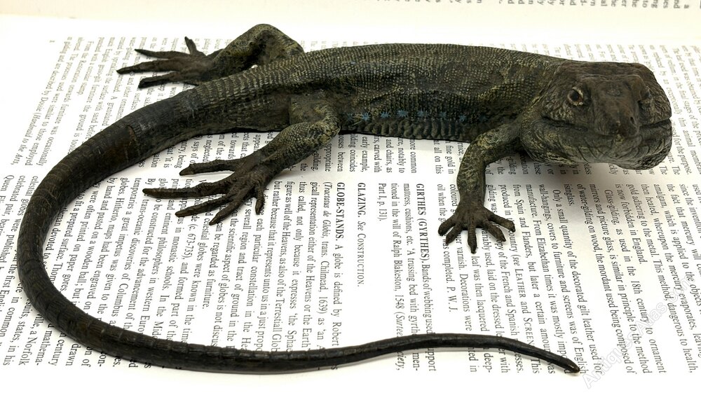 Here we have a large Franz Xaver Bergmann (1861 - 1936) cold painted bronze model of a Lizard, it is very well cast and cold painted in a naturalistic setting and carries the Bergmann 'B' in the urn and 'Geschutzt' and the number 4133 on the underside and is in very good condition.