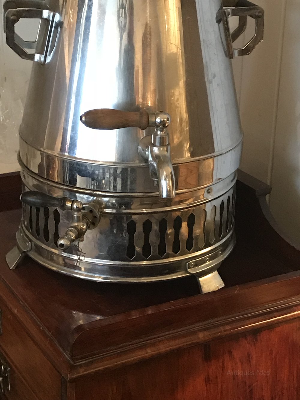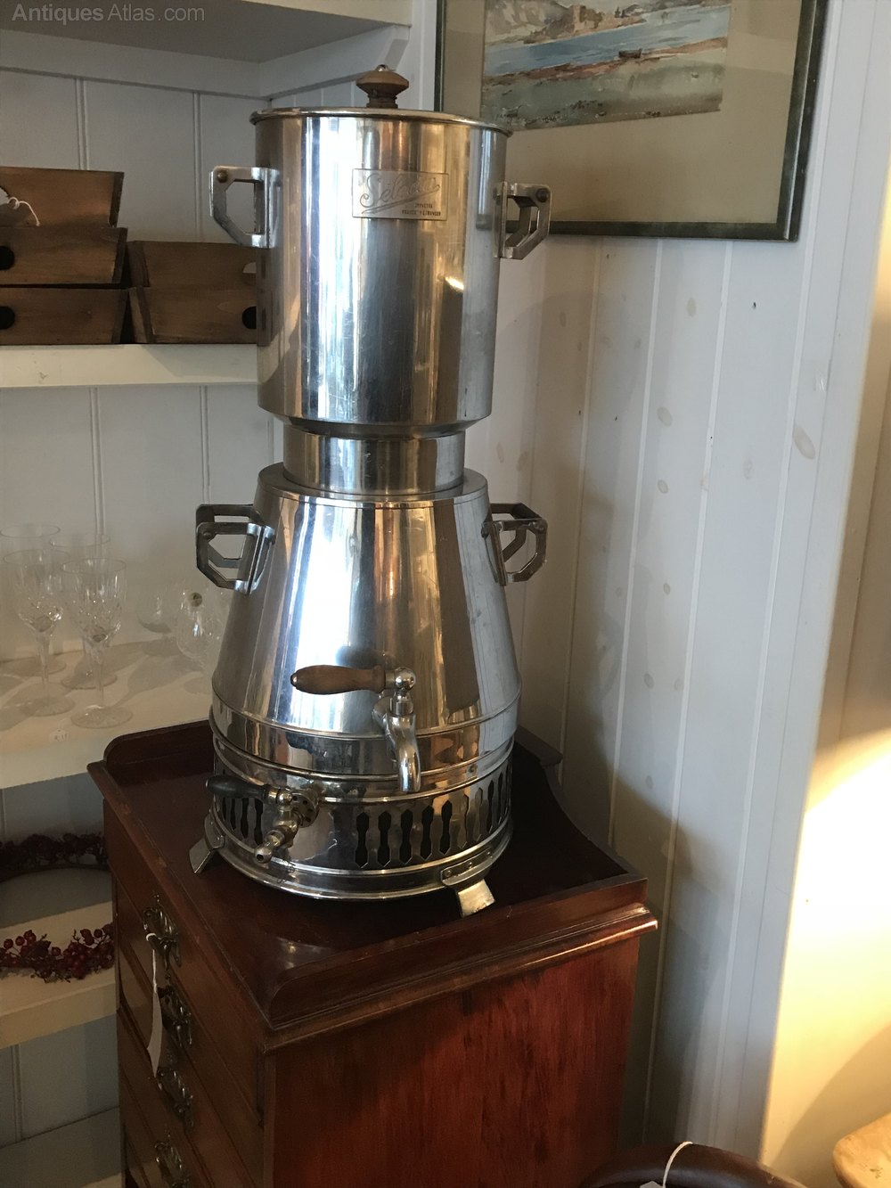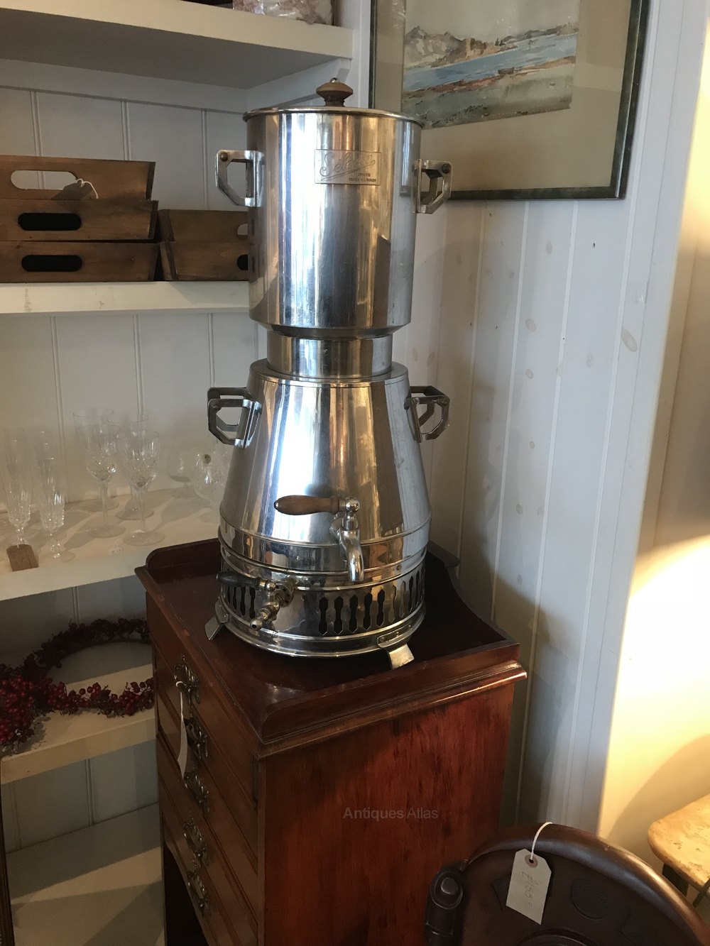 This a large French Chrome coffee percolator, it’s chromed overall and takes down into three sections the sort of percolator that would have been used in the local bar tabac in the 1950 the taps are free and it looks ready to go.